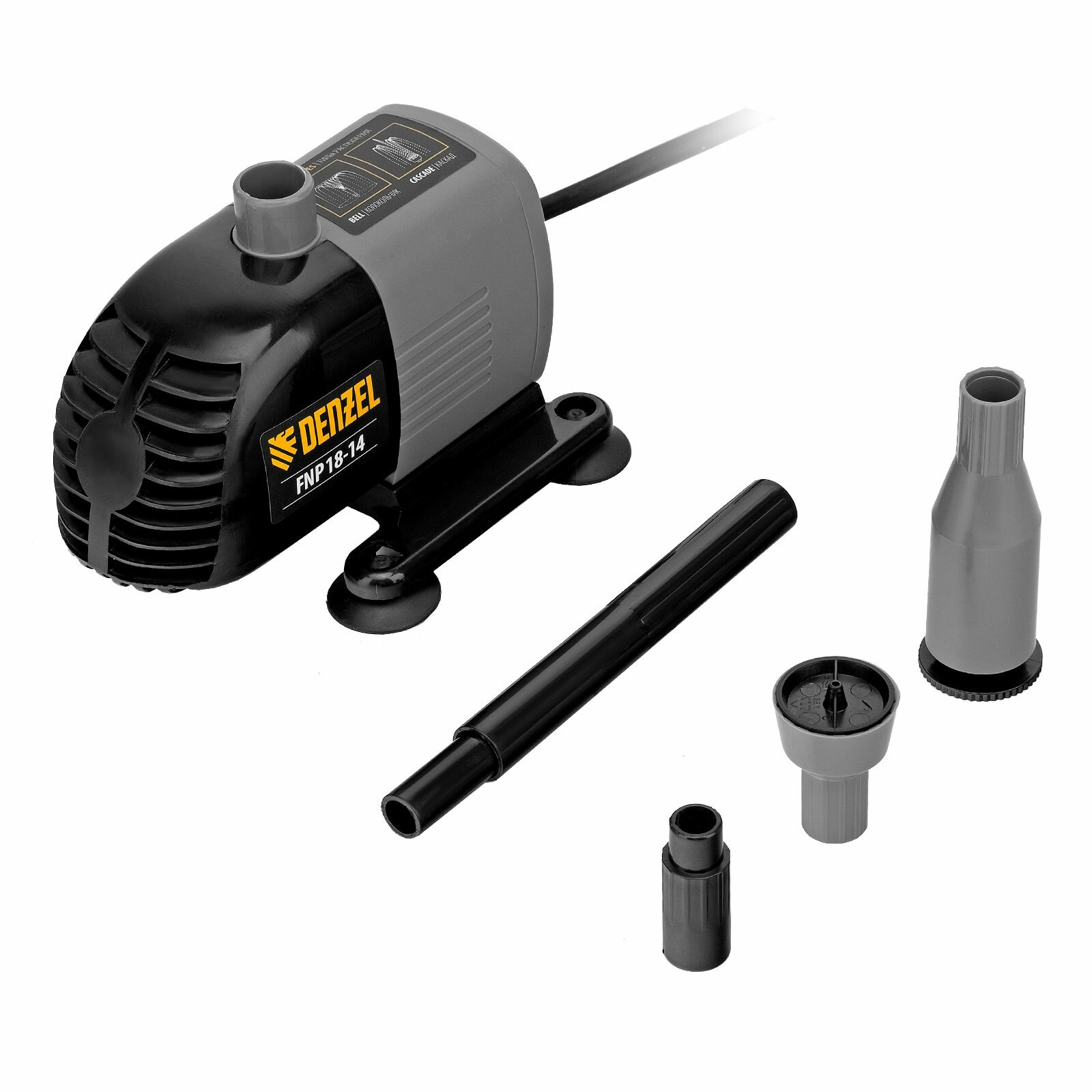 Насос фонтанный Fnp18-14, 18 Вт, подъем 1,4 м, 750 л/ч, колокольчик/каскад// Denzel 99030 .