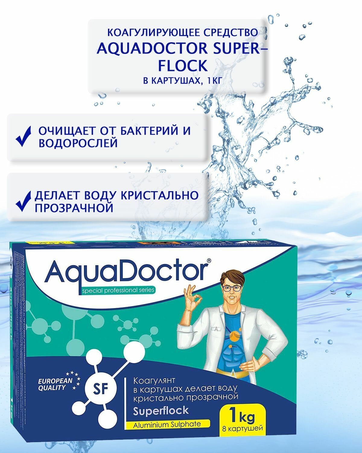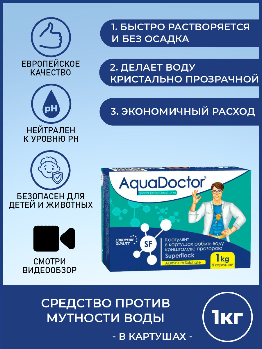 AquaDoctor Superflock (1 кг): Коагулянт длительного действия для бассейна. АкваДоктор Суперфлок.