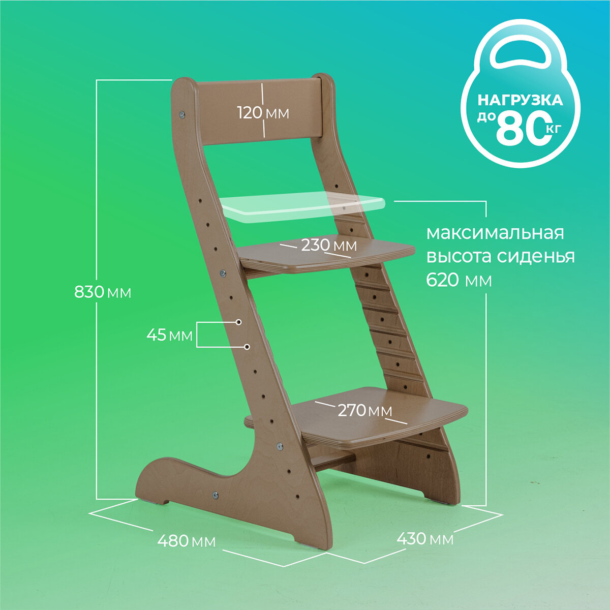 СохранитьРастущий стул для детей, детский деревянный стульчик для школьника Конек Горбунек Стандарт, цвет Капучино интересное: