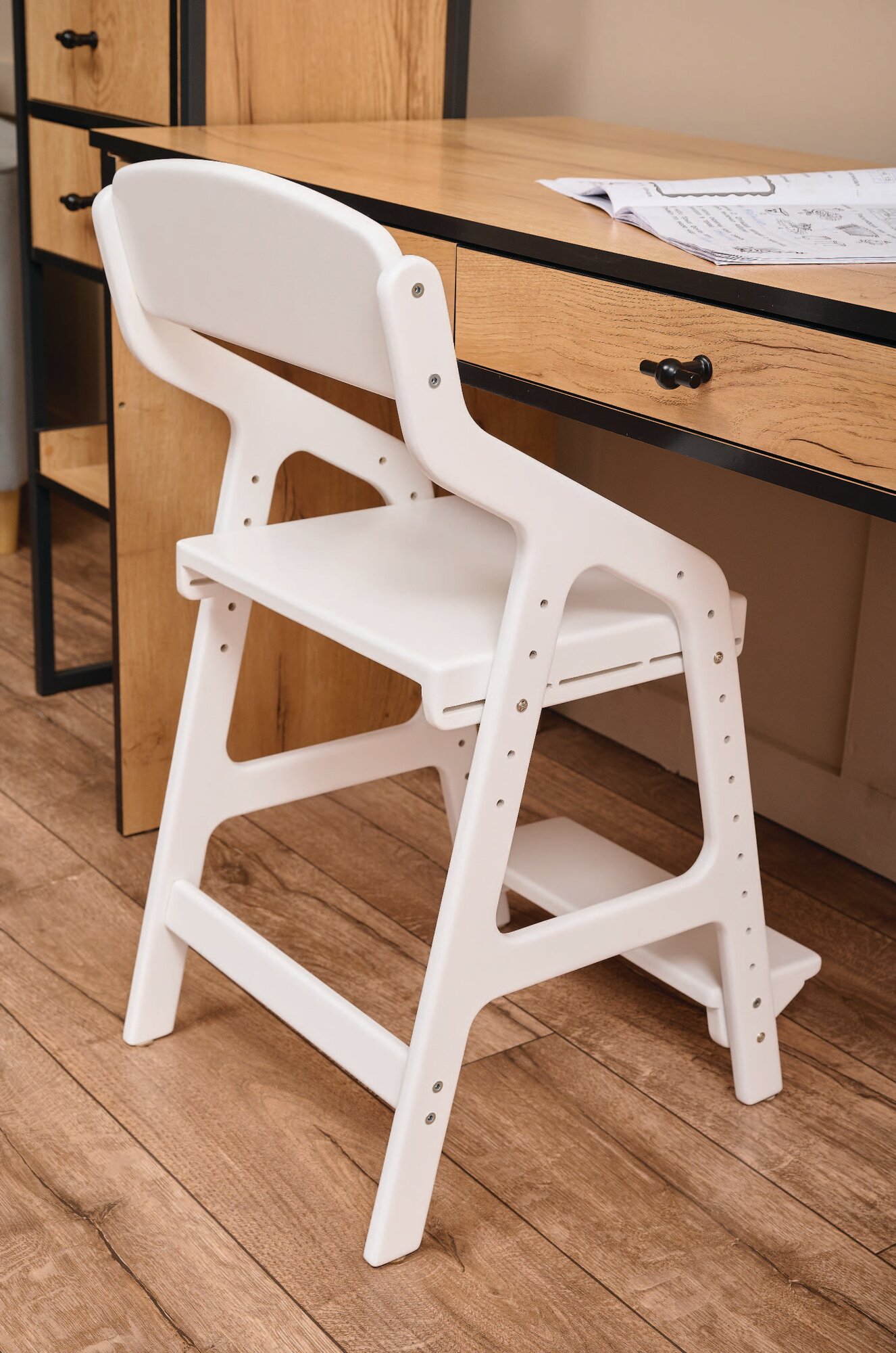Растущий стул для детей FORLIKE белый, с подлокотниками, деревянный регулируемый стул