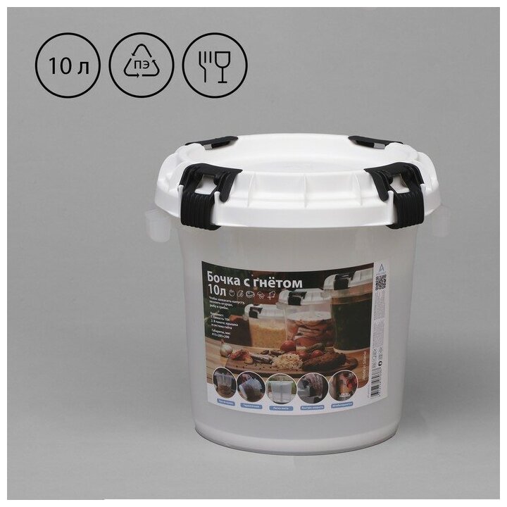 Купить Бочка пищевая с гнётом и герметичной крышкой 10л (для засолки) 9344610