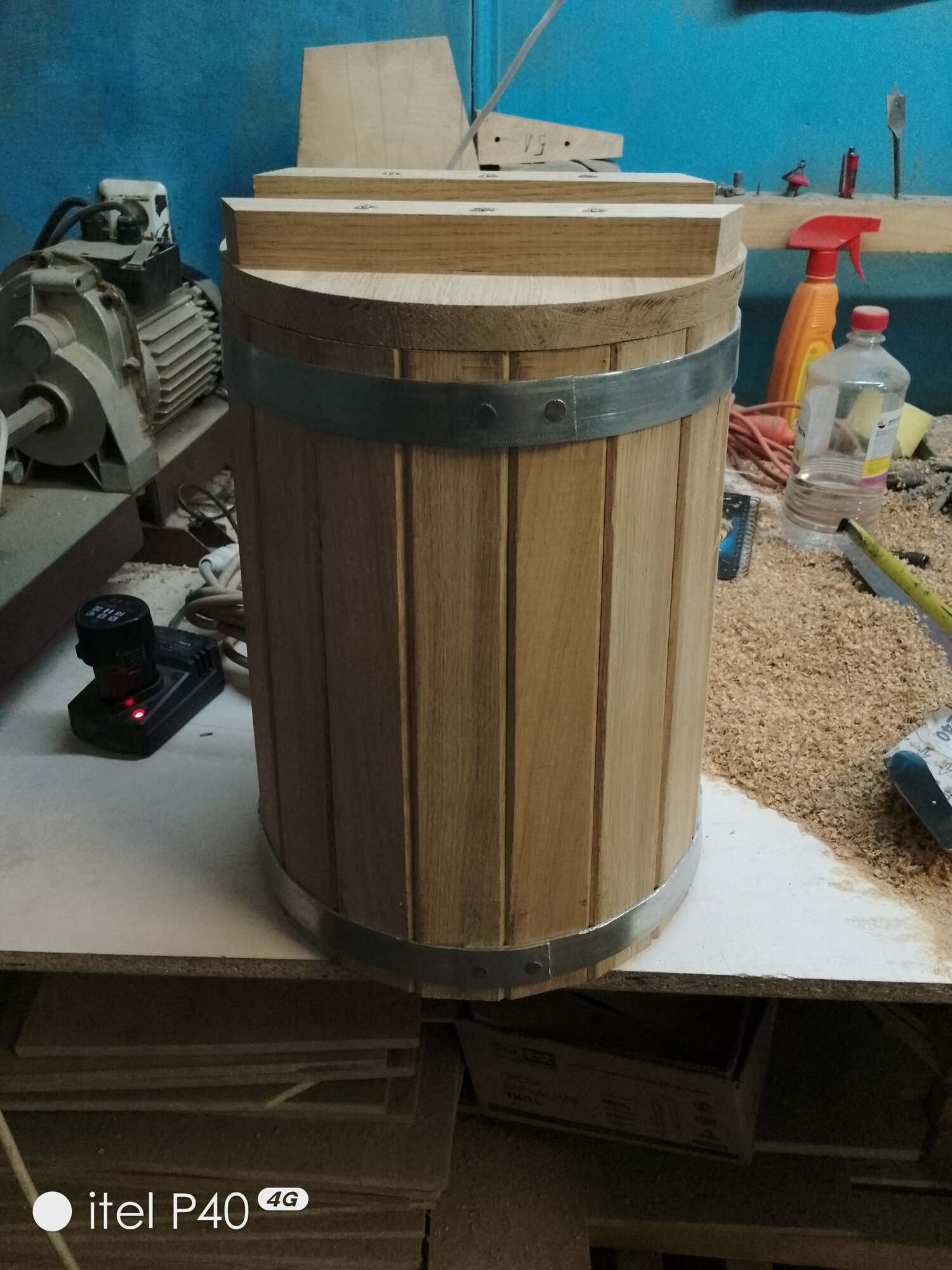 Бочка дубовая на подставке, 3л, нержавеющий обруч, кран из латуни, покрыта льняным маслом