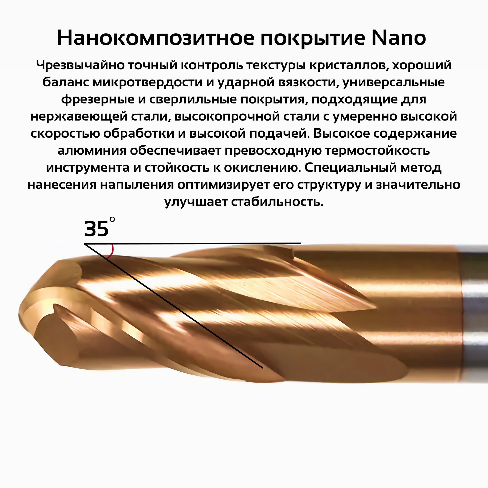 СохранитьФреза по металлу сферическая 4R*8d*16C*8D*60L*2F HRC60 монолитная твердосплавная с нанокомпозитным покрытием Nano интересное: