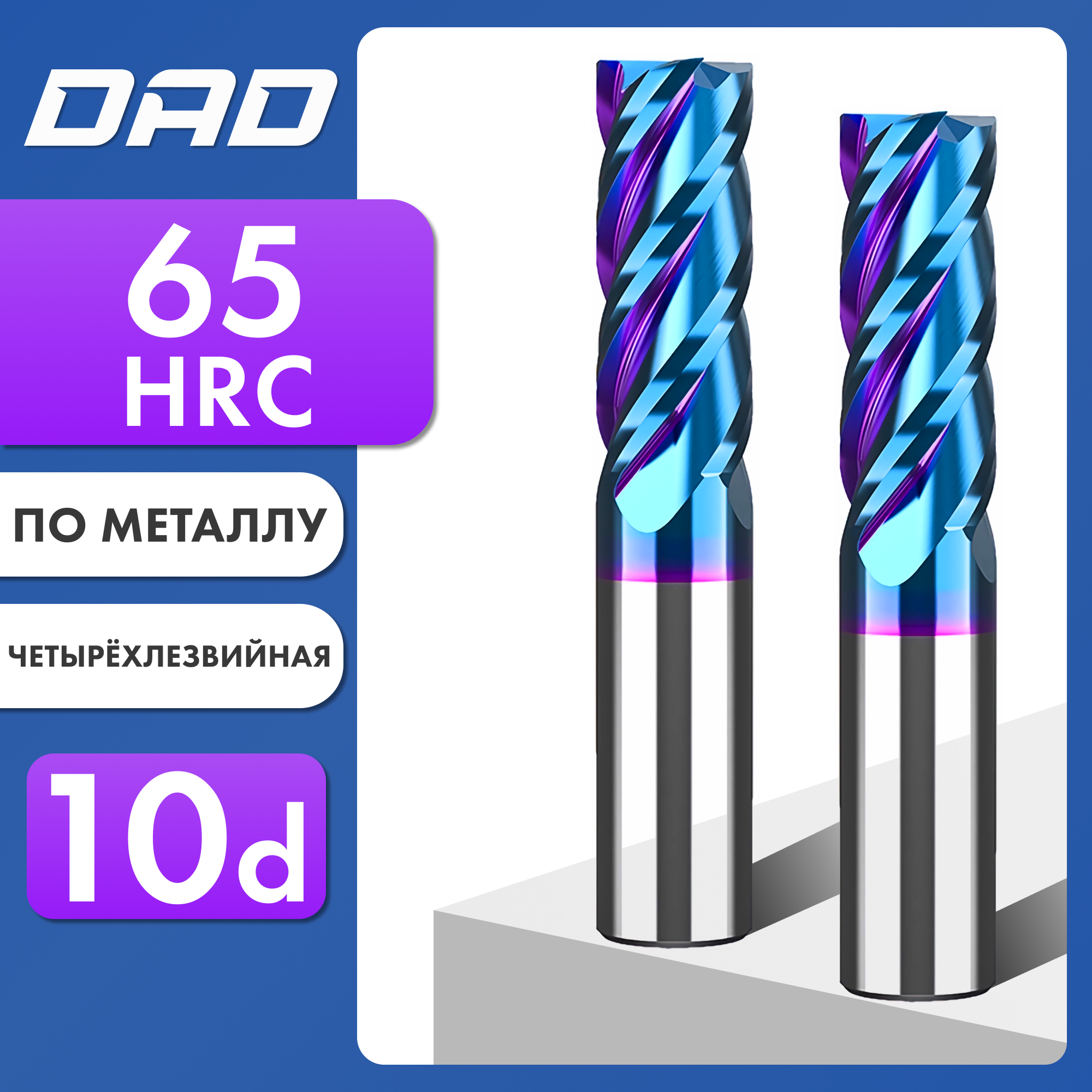 Фреза по металлу концевая 4d*10C*4D*L50*4F HRC65 монолитная сверхтвёрдая с нанокомпозитным напылением nACo