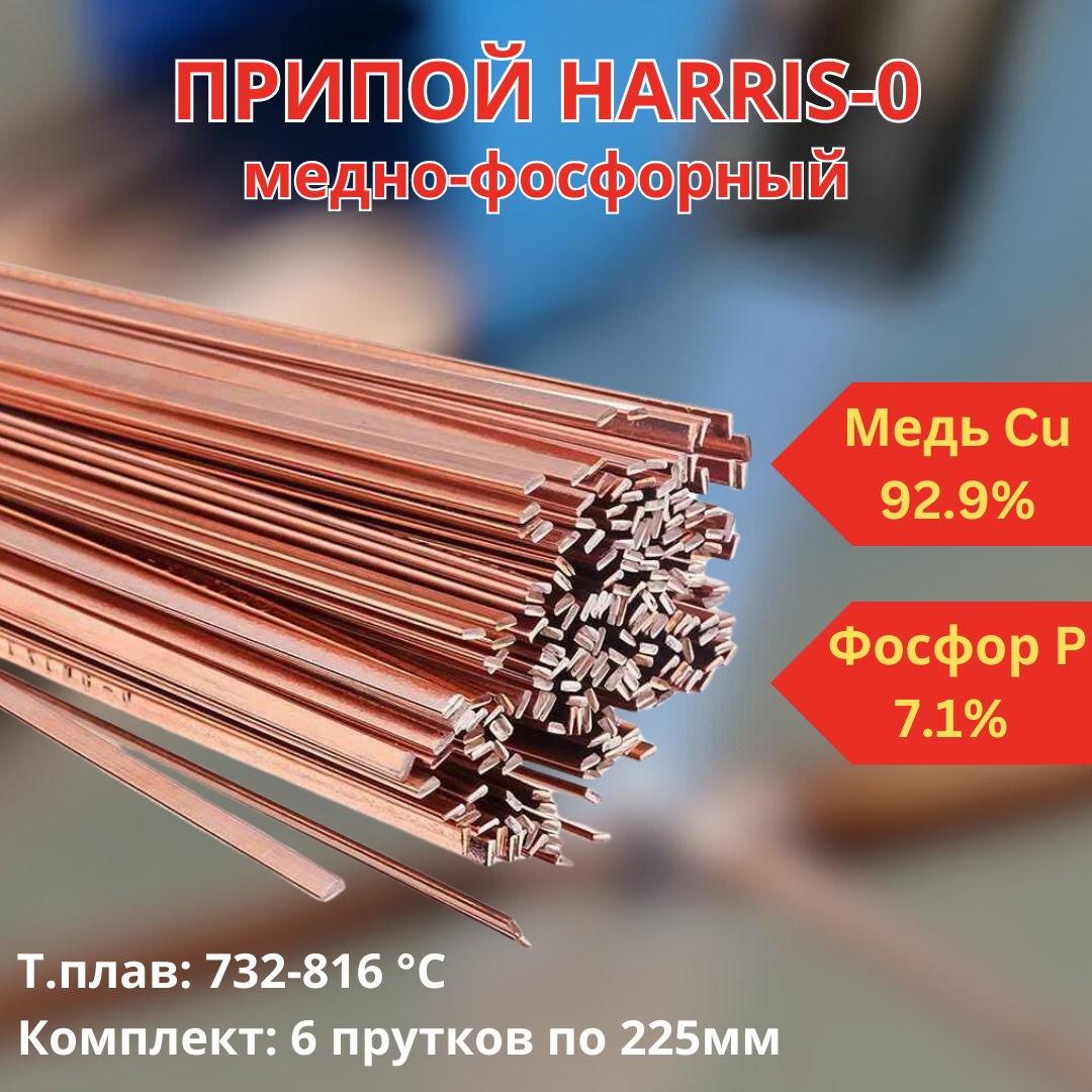 (6 шт в комплекте!) HARRIS - 0 пруток 1.3х3.2х225 мм (28-60), припой медно-фосфорный. Для пайки меди и медных труб, латуни и бронзы (У) интересное:
