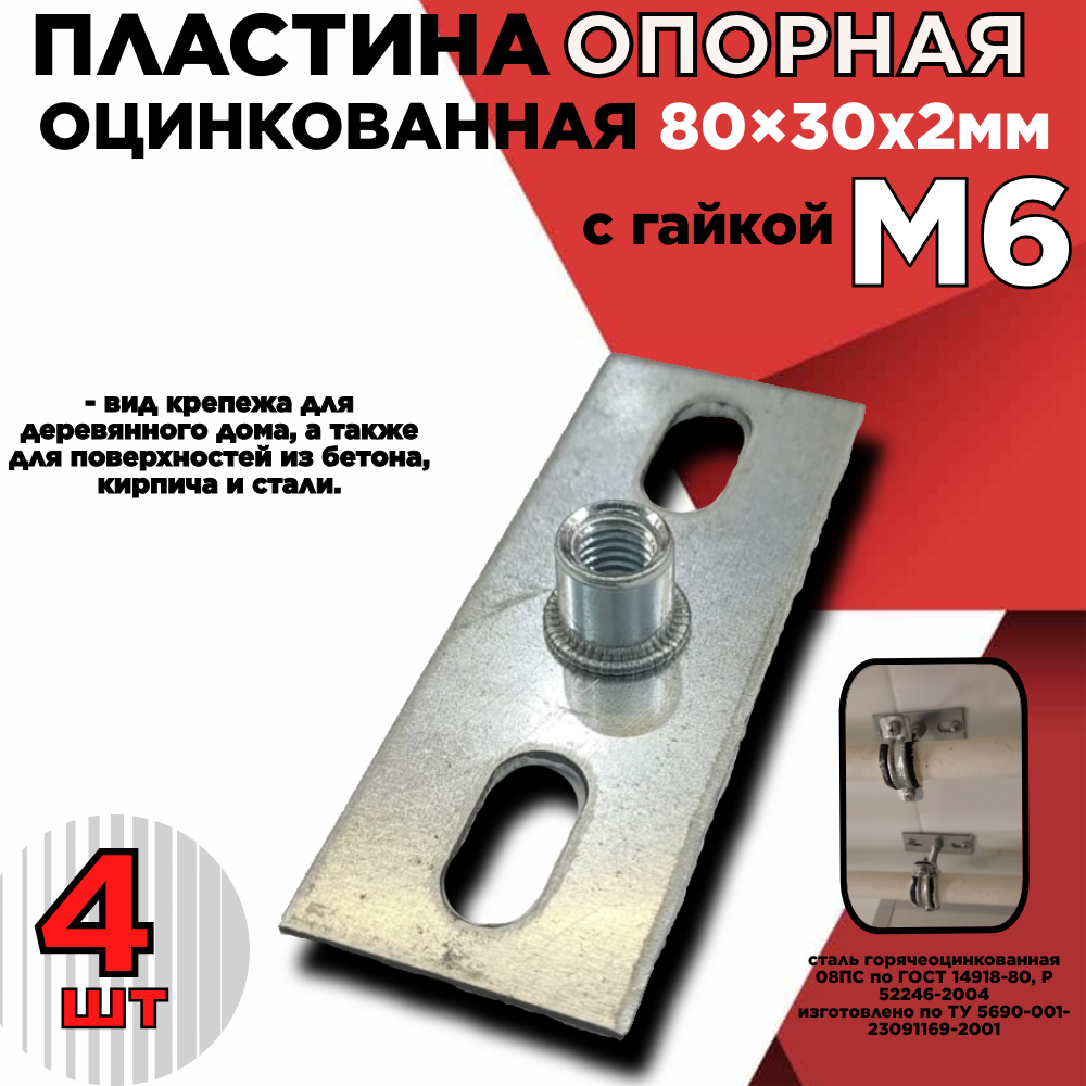 СохранитьПластина опорная (4шт.)/площадка с резьбой/с гайкой М6 облегченная 80х30х2мм оцинкованная интересное: