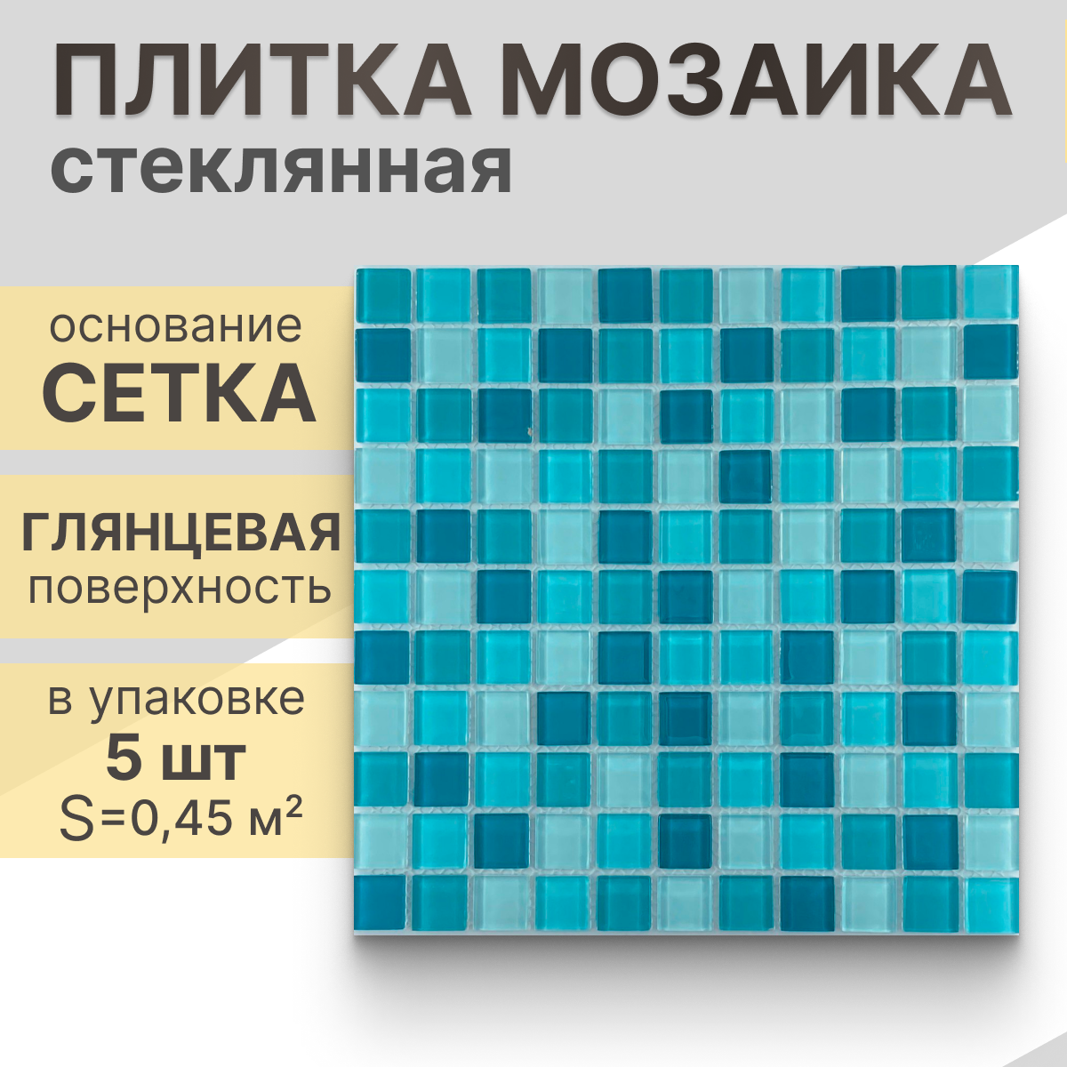 Мозаика Natural STP-BL014 из глянцевого стекла размер 31.5х31.5 см чип 25x25 мм толщ. 5 мм площадь 0.099 м2 на сетке