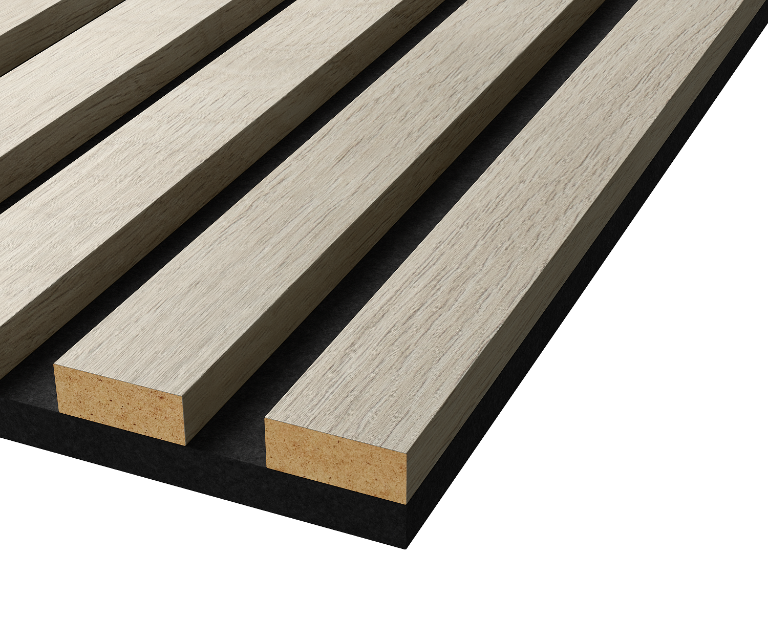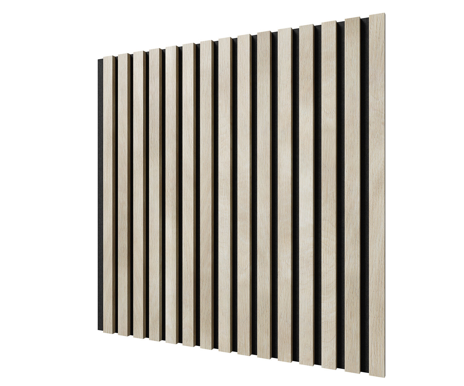 Акустическая панель, черный войлок, 600х600х21мм, рейки МДФ, шпон дуб клэр светлый. Cosca Decor