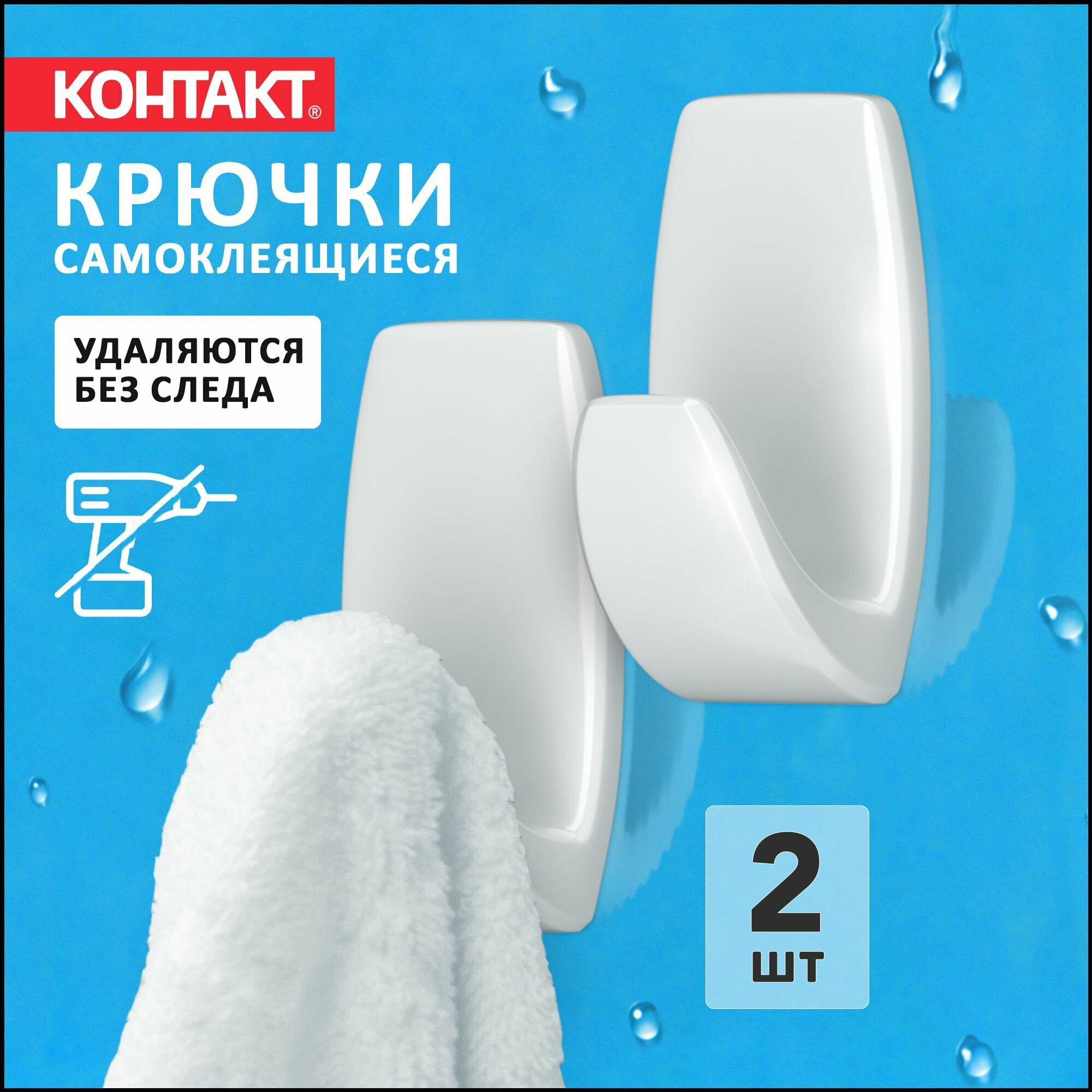 Крючки самоклеющиеся контакт сменное крепление белые 2 шт.