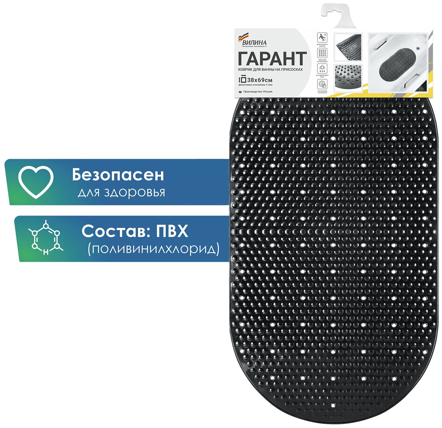 Коврик для ванны противоскользящий VILINA на присосках массажный резиновый 38х69 см "гарант" графитово-серый