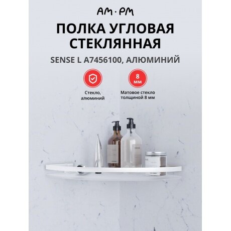 Полка для ванной комнаты угловая AM.PM Sense L стеклянная, алюминий интересное: