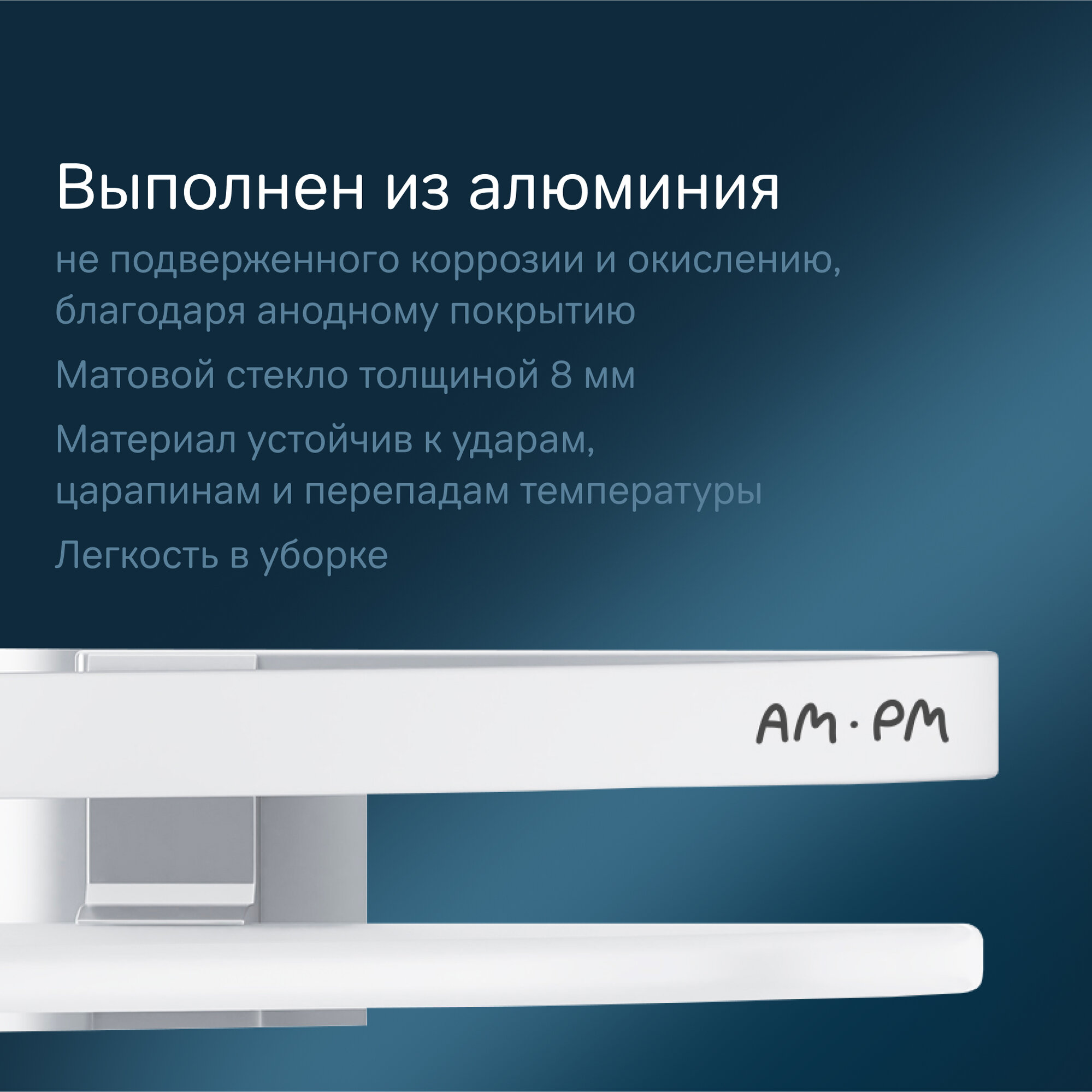| Дополнительная информация | матовое стекло толщиной 8 мм; направляющие из анодированного алюминия |