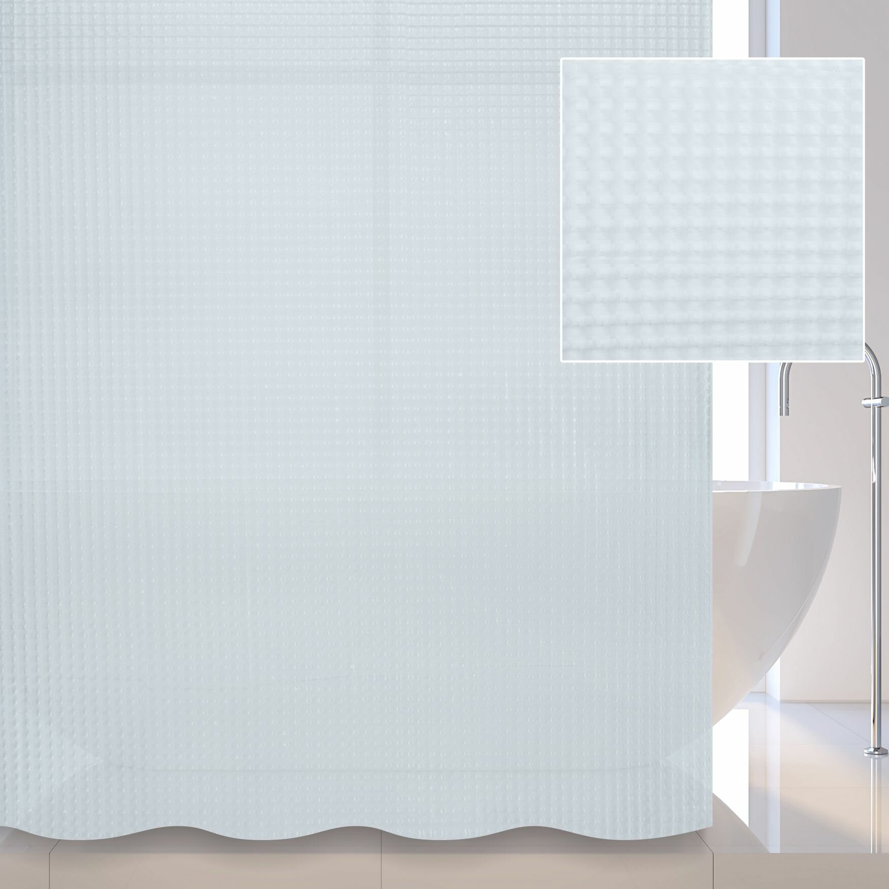 Купить Штора для ванной комнаты 180х180 см Stt полупрозрачная с 3D-эффектом / Шторка 3Д для ванной комнаты и душа 180 см на 180 см / Кольца в комплекте