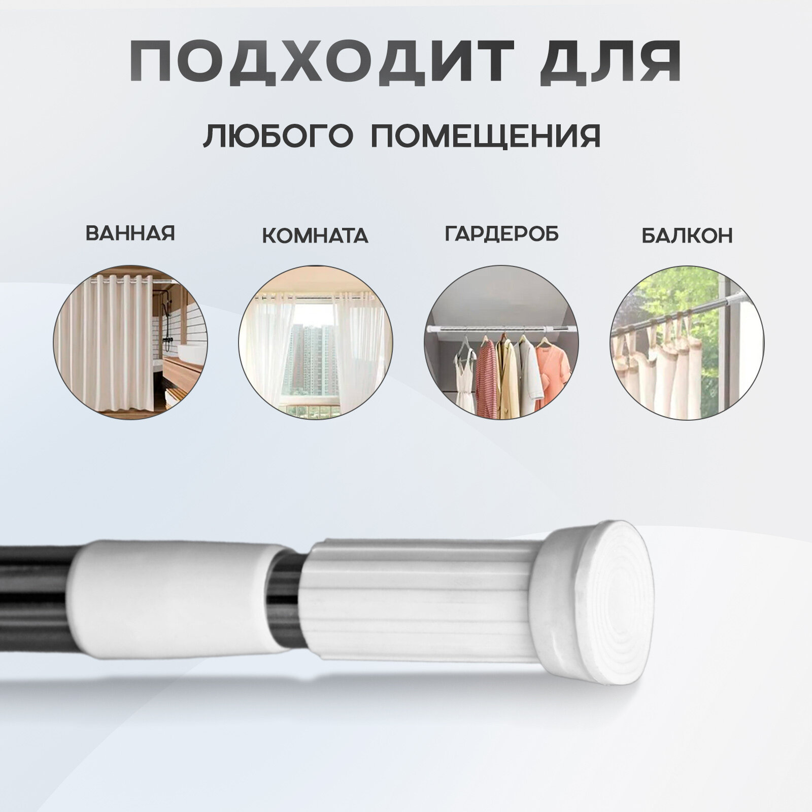 | Дополнительная информация | Установить этот карниз невероятно просто благодаря удобному механизму раскручивания. Просто закрепите один конец на стене и раскрутите другой до нужной длины, а затем сделайте еще пару оборотов для надежной фиксации. |
