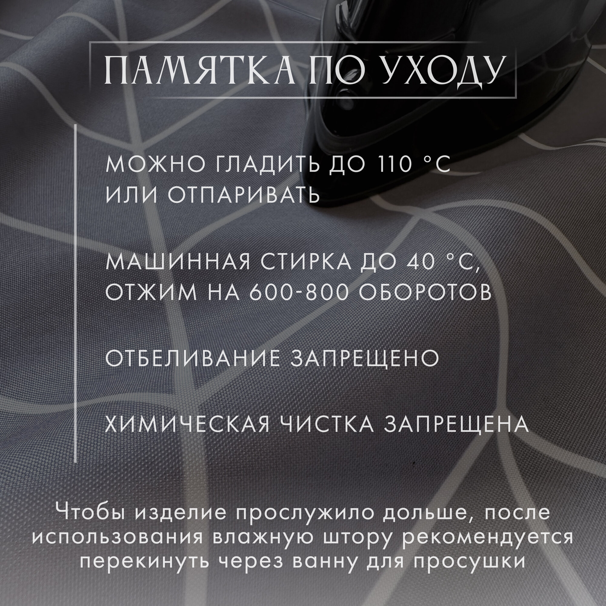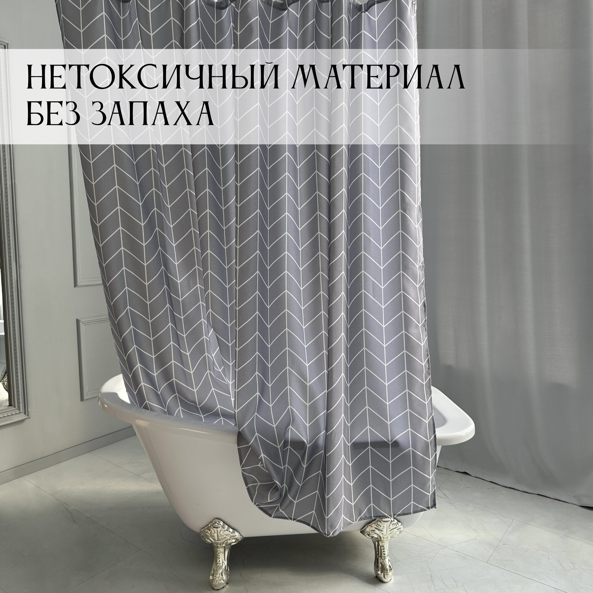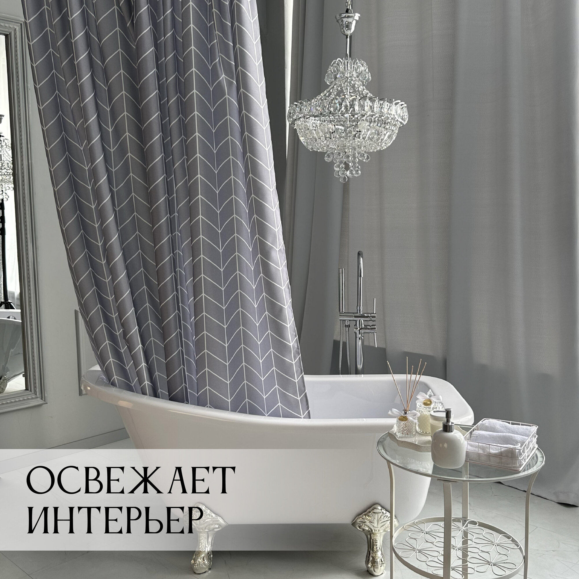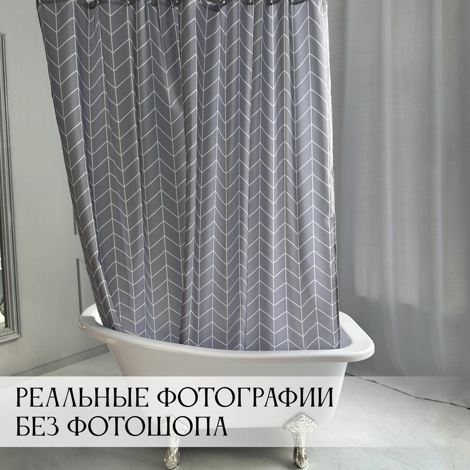 Штора для ванной занавеска душевая серая стильная шторка для душа в ванную 180х180 штора с кольцами Rocco Home