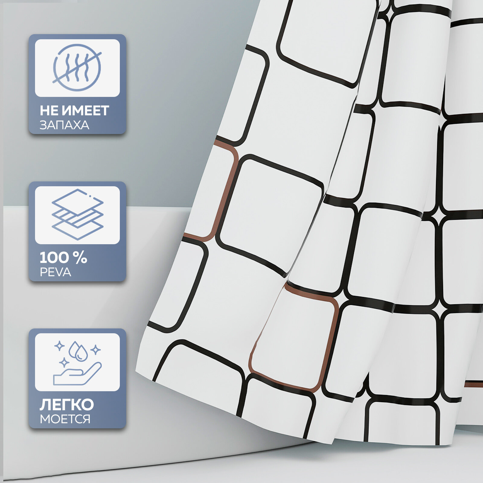 Купить Штора для ванной Доляна «Квадраты», 180×180 см, PEVA