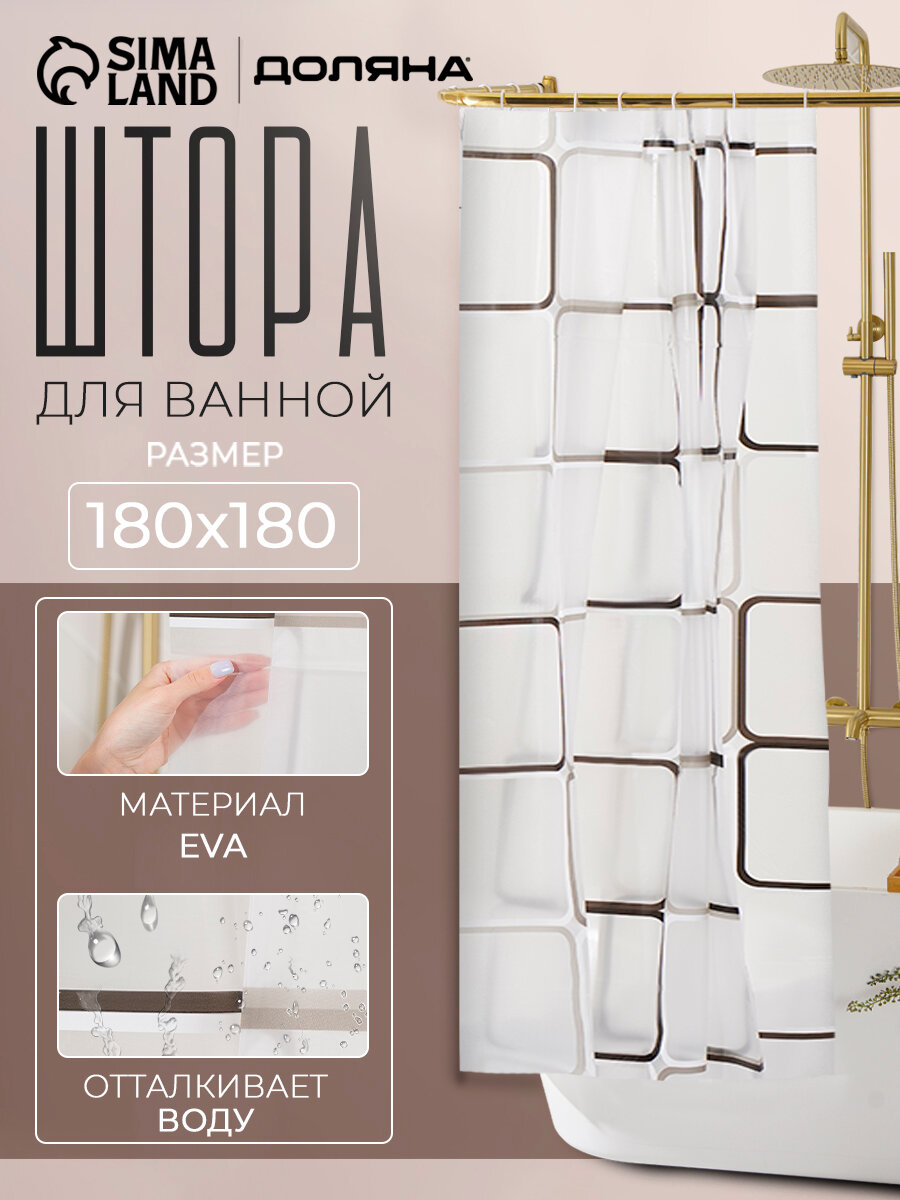 Штора для ванной Доляна «Квадраты», 180×180 см, PEVA интересное: