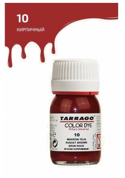 Краситель для изделий из гладкой кожи Tarrago COLOR DYE 25 мл, цвет 010 кирпичный