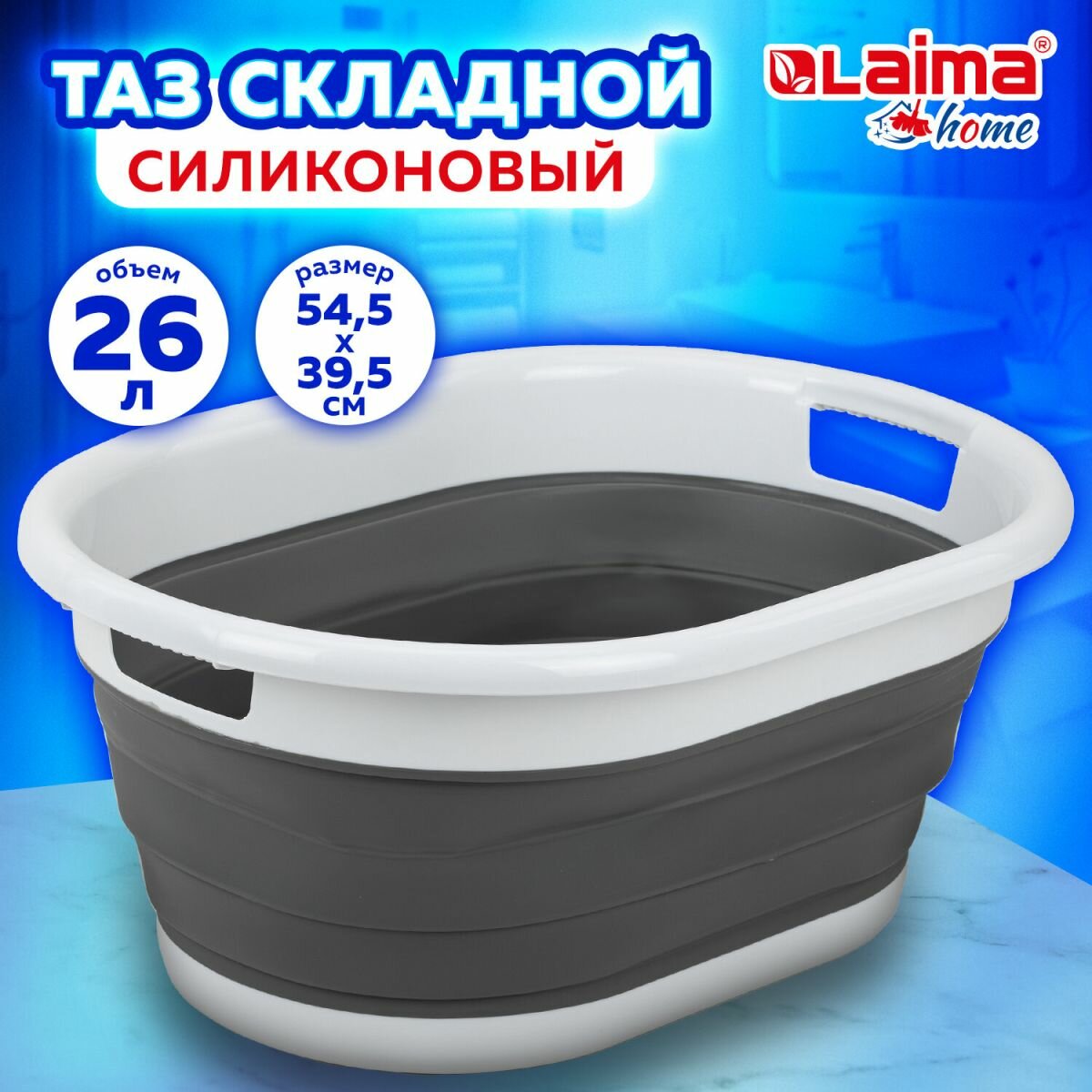 Таз складной Laima силиконовый 26 литров 54,5х39,5 см для дома и дачи, Home, 608670