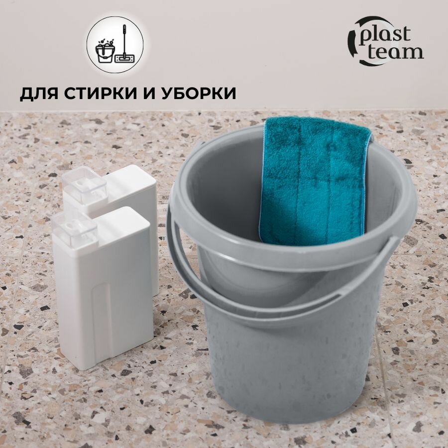 Ведро хозяйственное Plast team AMPARI с ручкой, 10 л, серый шторм