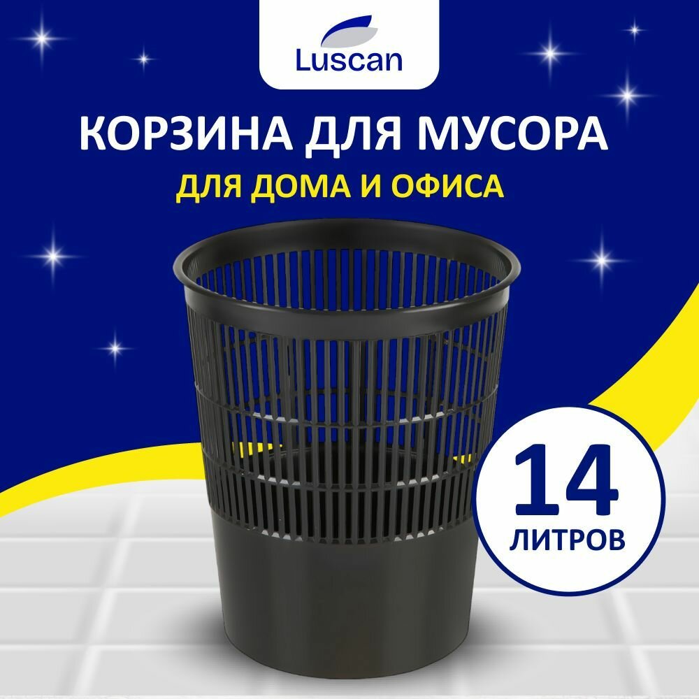 Корзина для бумаг 14л Luscan, пластик, круглая, черная (26х30см), 14шт.