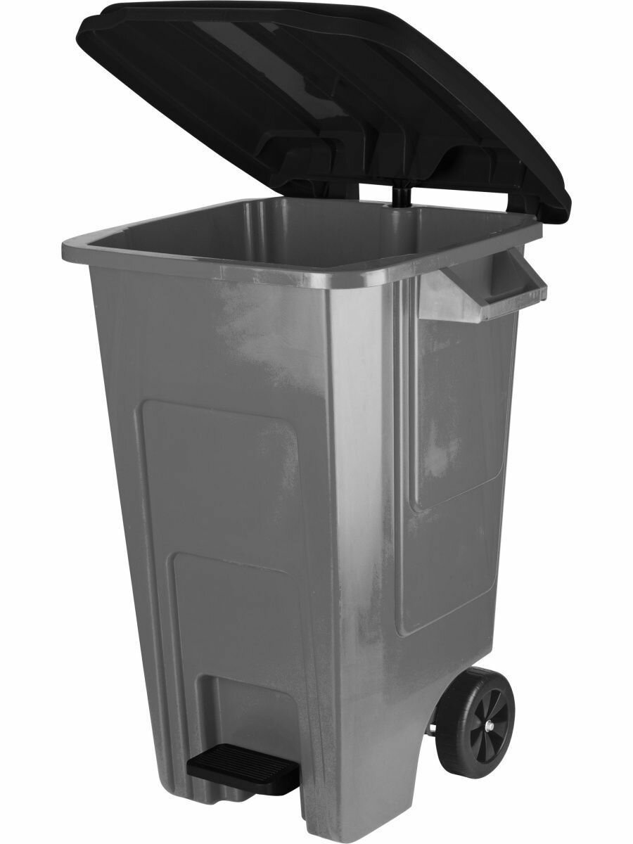 Бак для мусора уличный с крышкой на колесах 130л, дым интересное: