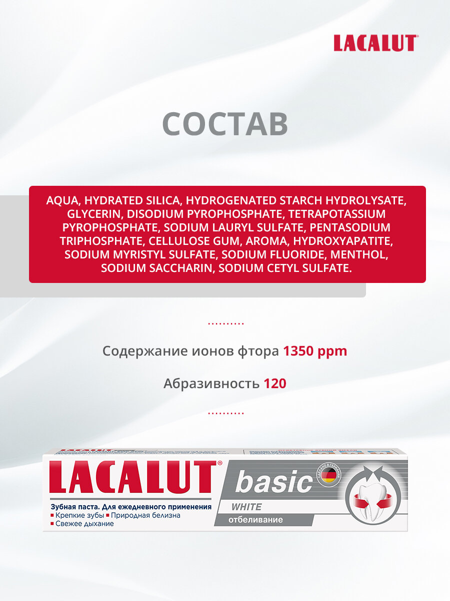 Зубная паста basic white 75 мл - Lacalut