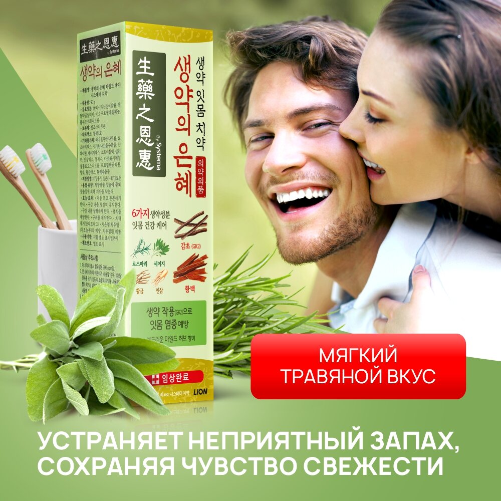 СохранитьПаста зубная LION SYSTEMA Soft Herbs 90 г интересное: