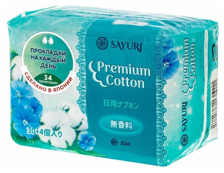 Гигиенические Прокладки Premium Cotton, 15 См 34 Шт SAYURI