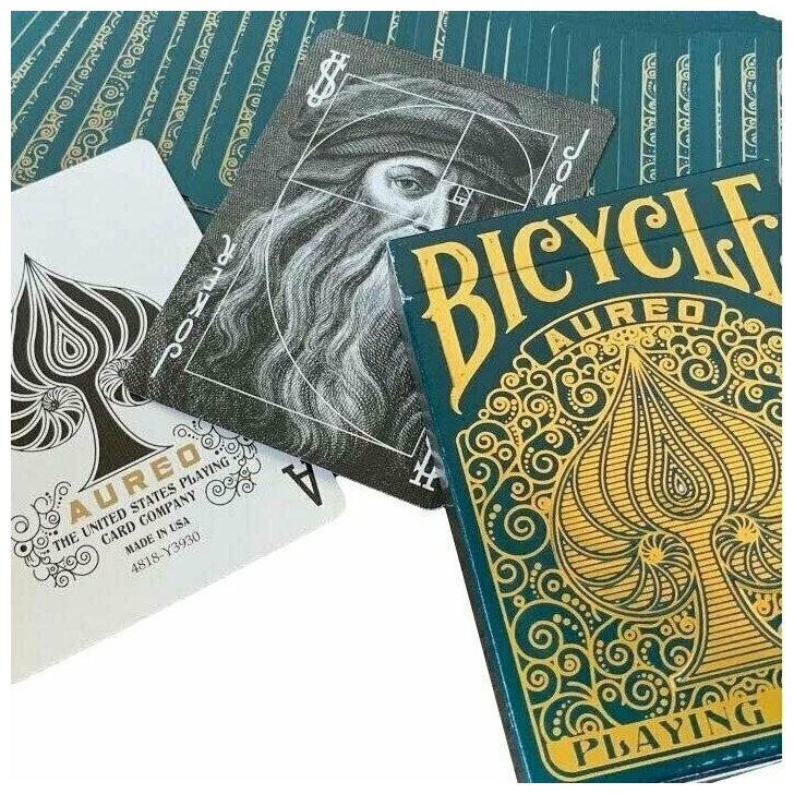 Bicycle Aureo Gold, игральные карты с зелено-золотой рубашкой интересное: