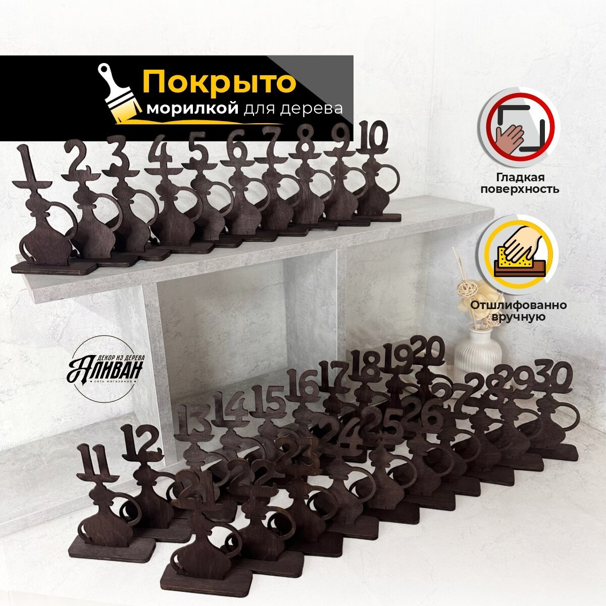 Номерки для кальянной 1-30 для рассадки гостей в натуральном цвете