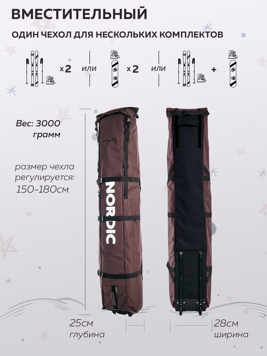 Чехол для лыж и сноубордов на колесиках Nordic 150-180 см бордовый