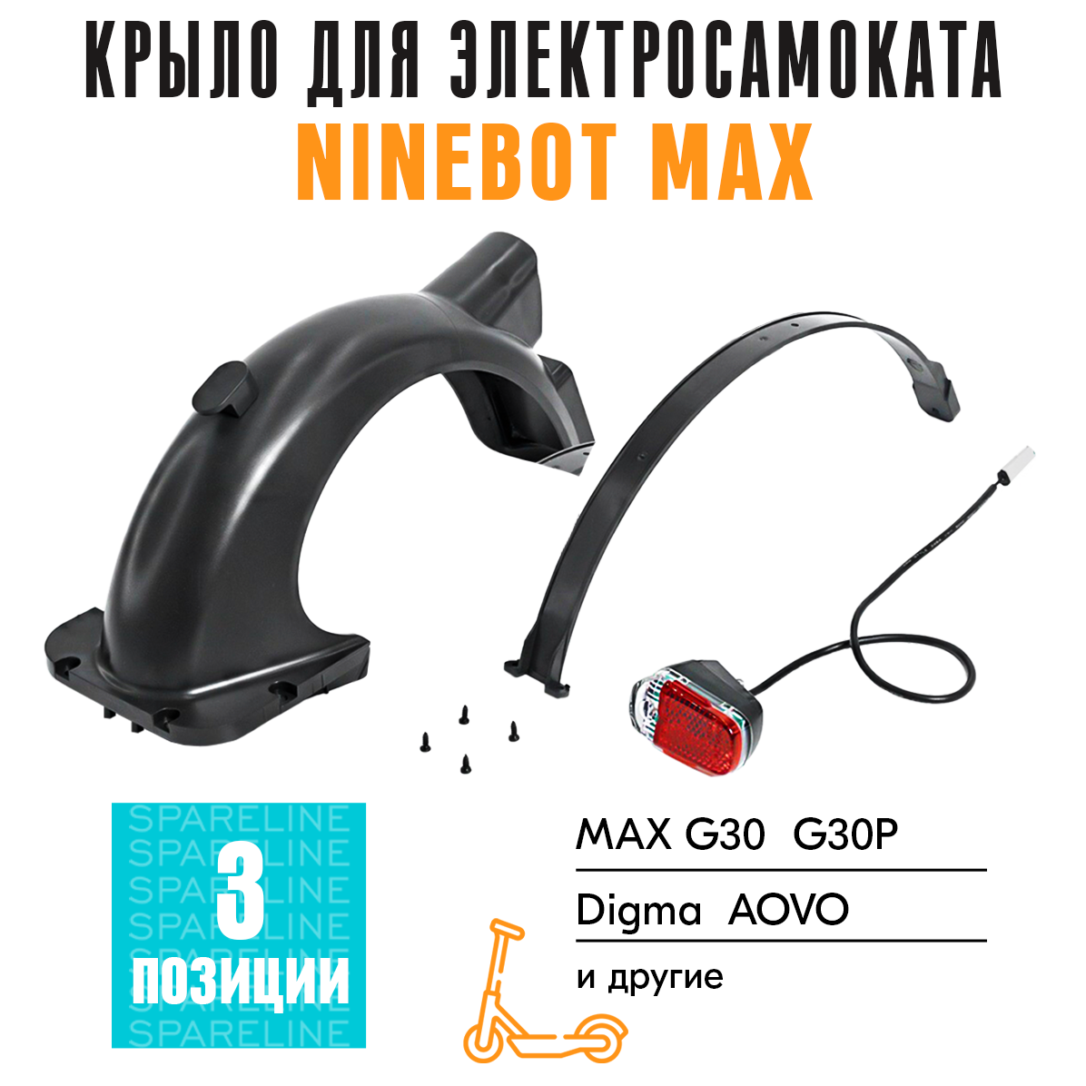 Крыло заднее в сборе для электросамоката Ninebot KickScooter MAX G30 / G30P / Digma , стоп-сигнал в комплекте интересное: