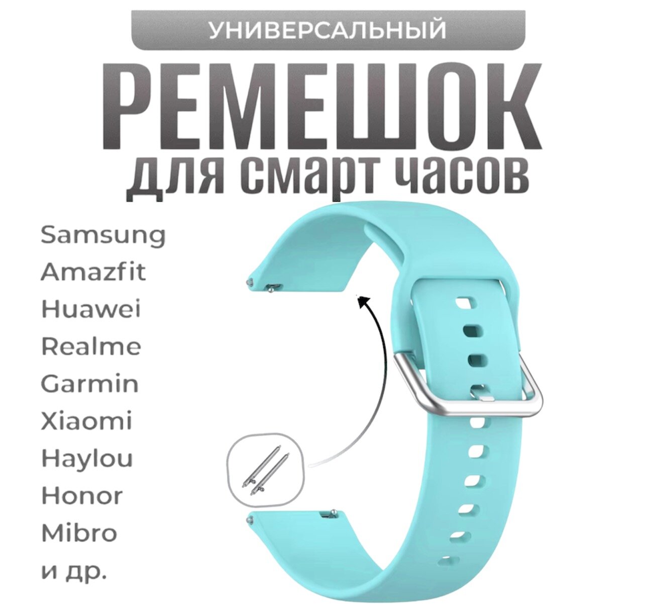 СохранитьСиликоновый ремешок для часов Amazfit Bip/Bip Lite/GTR 42mm/GTS/Samsung watch Active 2, 20 мм. голубой, гладкий с серебристой застежкой интересное: