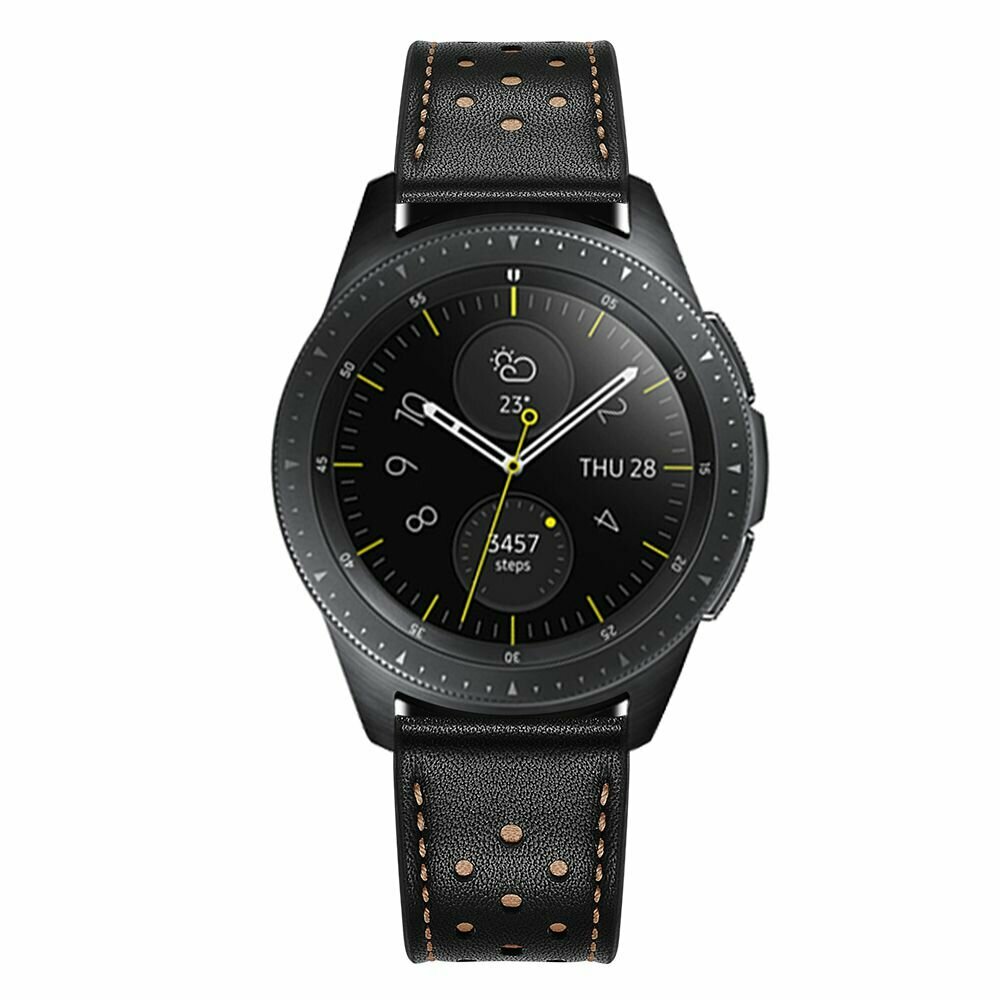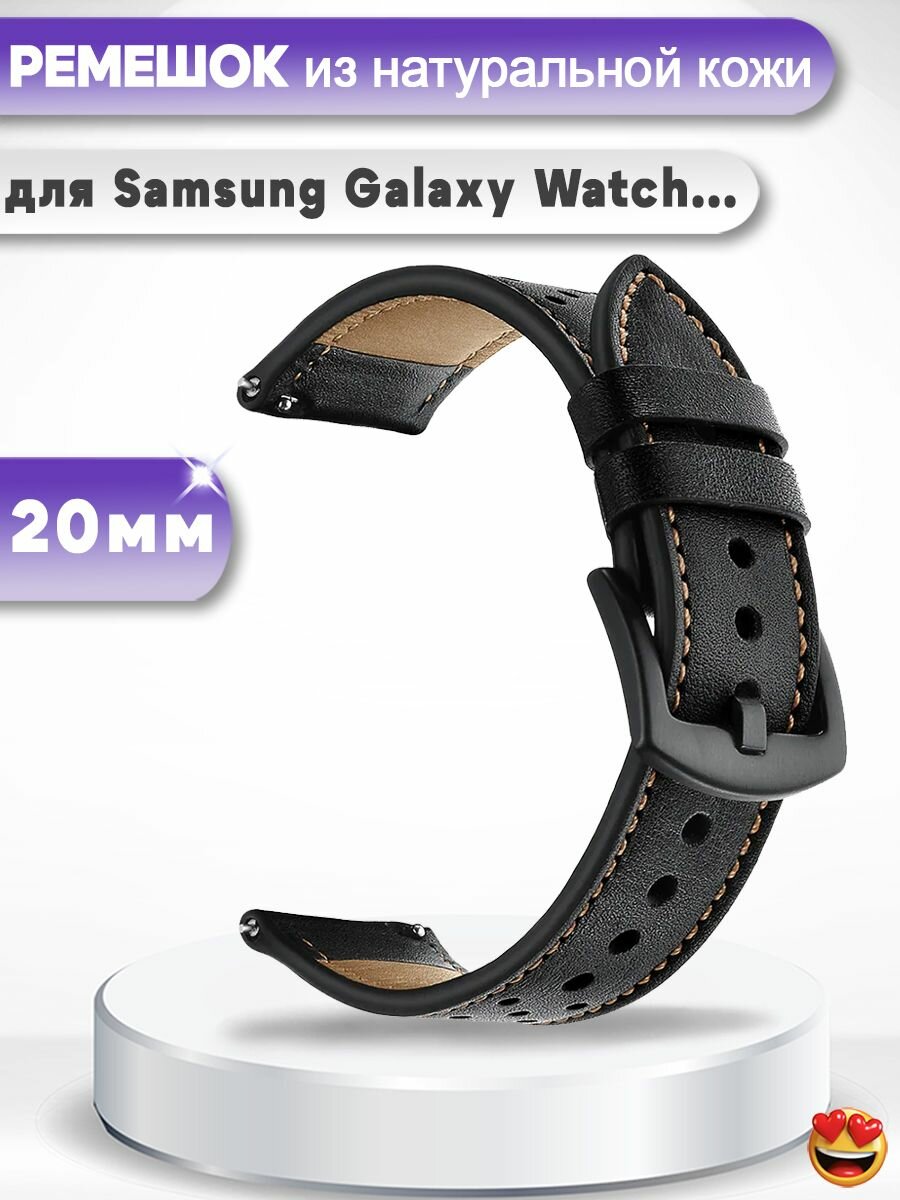 Ремешок из натуральной кожи 20 мм для смарт-часов Samsung Galaxy Watch 42мм - черный (черная фурнитура) интересное: