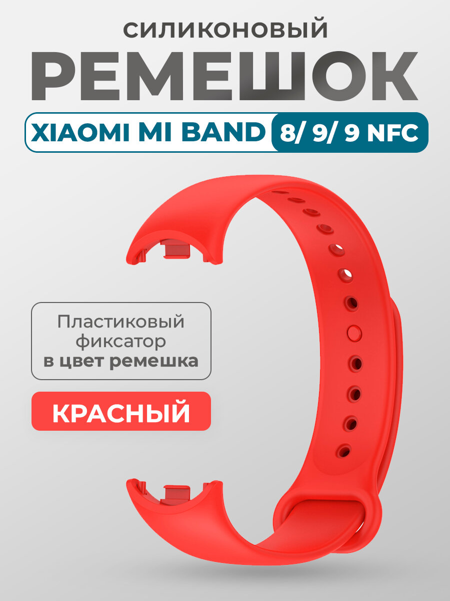 Купить Силиконовый ремешок для Xiaomi Mi Band 8/9/9 NFC, с пластиковым фиксатором, красный