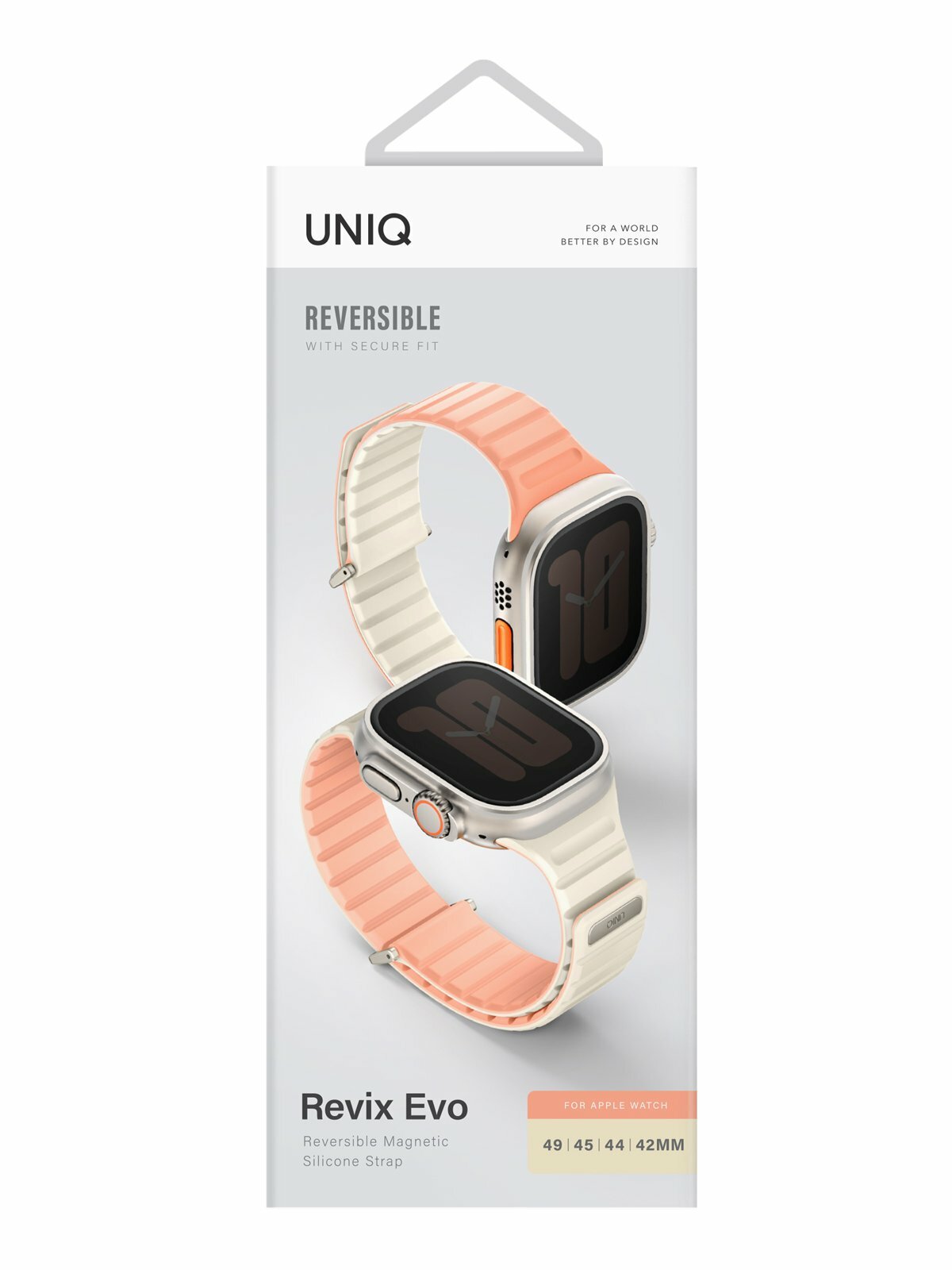 Uniq для Apple Watch 49/45/44/42 mm ремешок Revix EVO reversible Magnetic Amber Orange/White