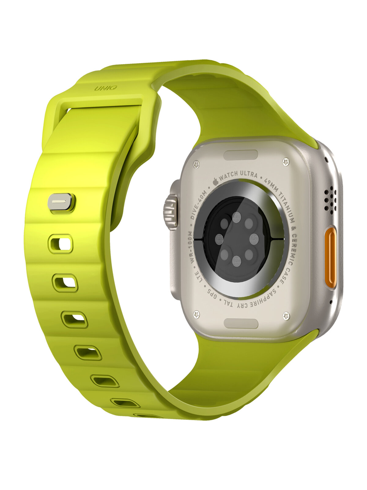 Ремень каучуковый Uniq STRIDE FKM RUBBER для Apple Watch 49/45/44/42, цвет лайм (VOLT ORANGE)