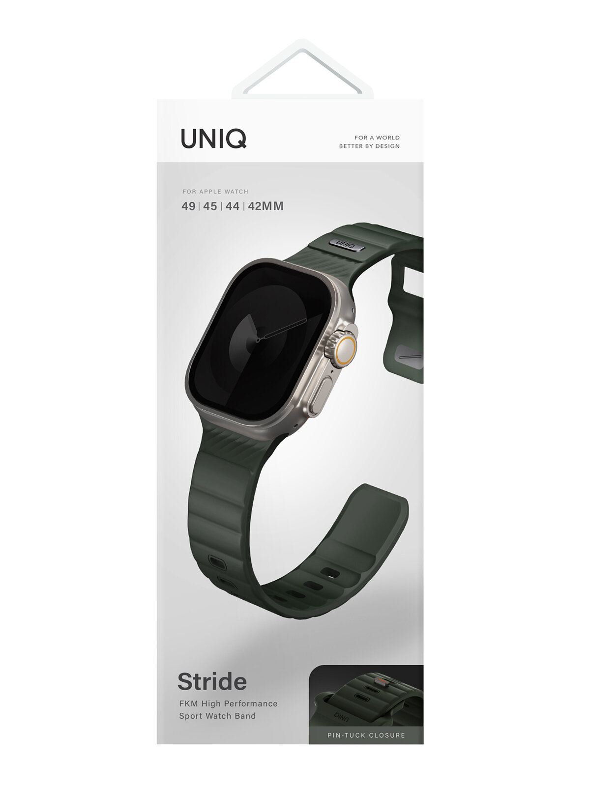 Uniq для Apple Watch 49/45/44/42 mm ремешок STRIDE FKM Rubber Green