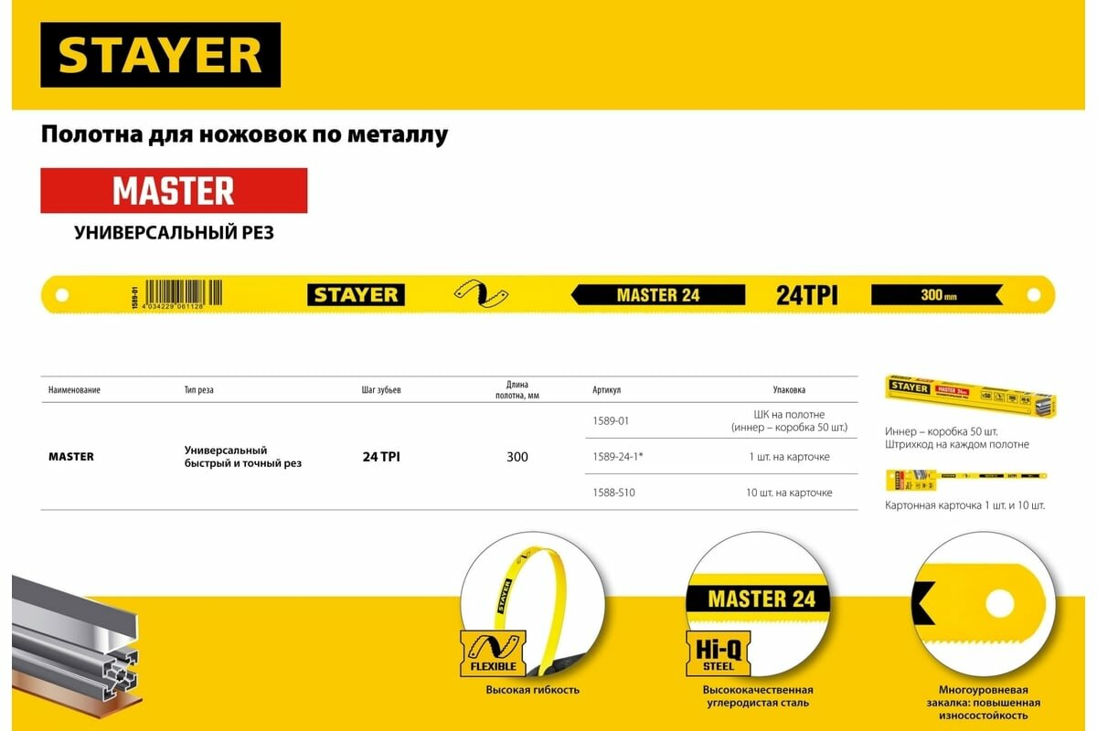 Stayer Полотно по металлу, 24 TPI: универсальный рез, 300 мм, 1 шт MASTER-24 1589-01_z01