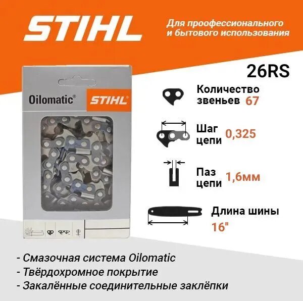 Цепь пильная STIHL 16"-325-1,6-67E, 26RS интересное: