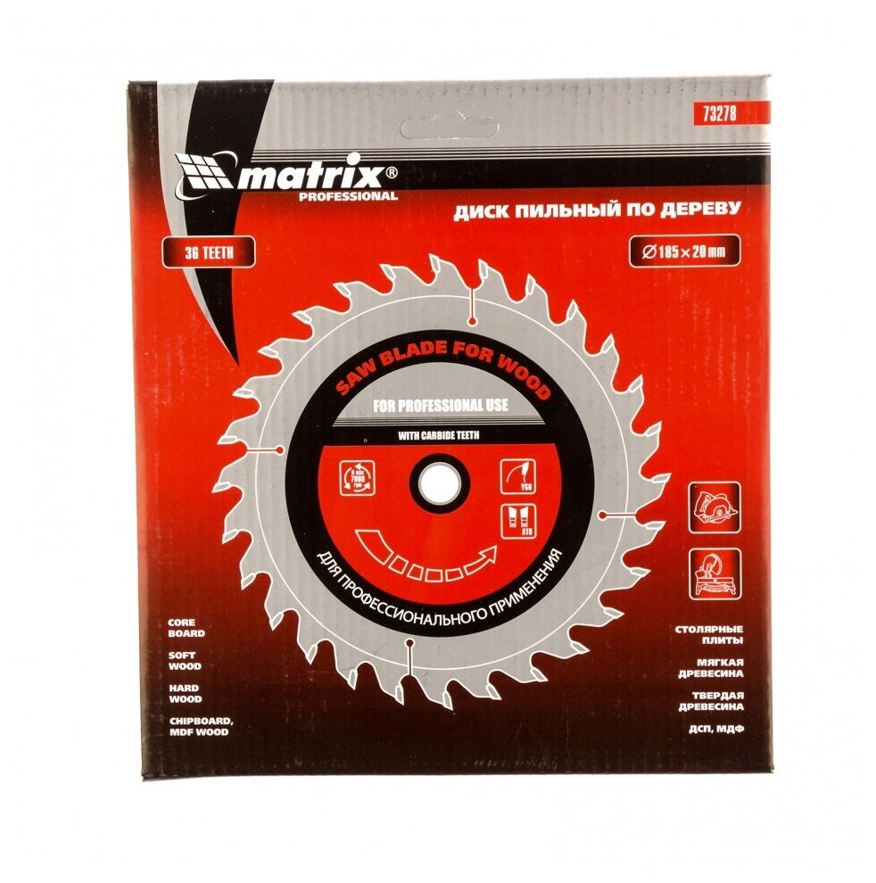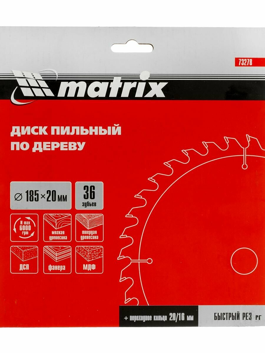 Пильный диск по дереву Matrix ф185 х 20 мм, 36 зубьев + кольцо 20/16 73278 интересное: