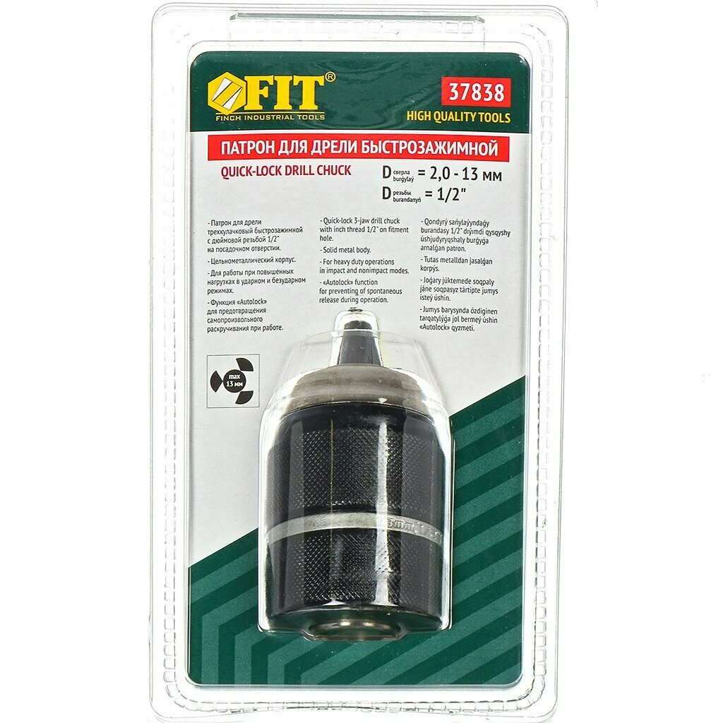 Патрон для дрели бесключевой 2-13мм 1/2" с фиксатором FIT 37838 интересное: