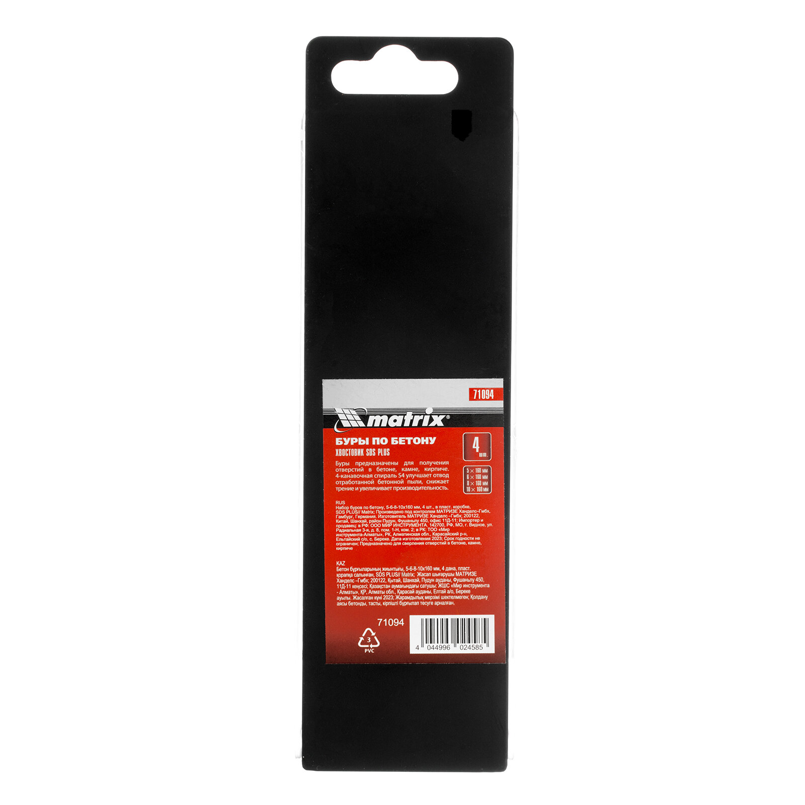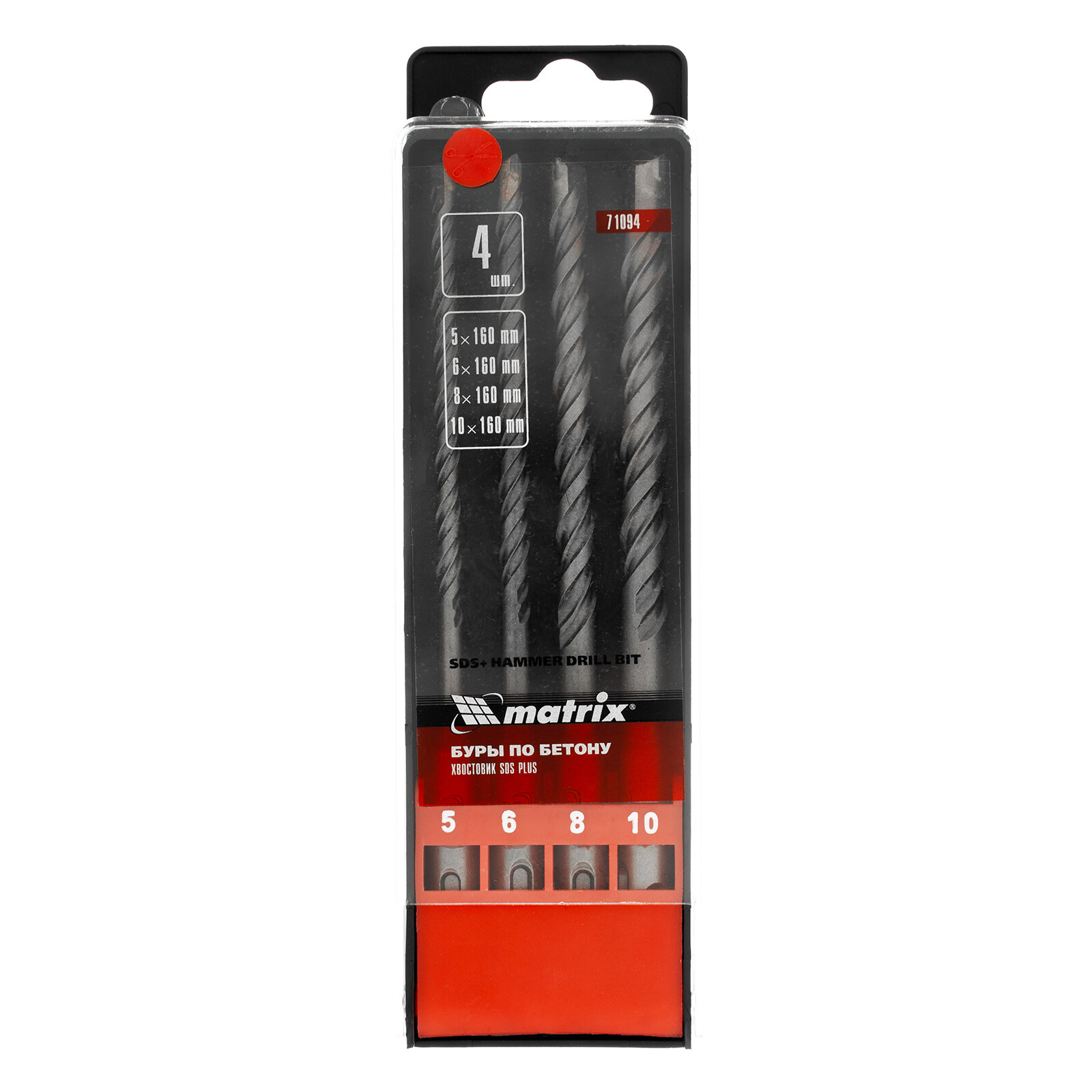 Купить Набор буров по бетону Matrix 5-6-8-10х160 мм, 4 шт, в пласт. коробке, SDS PLUS 71094