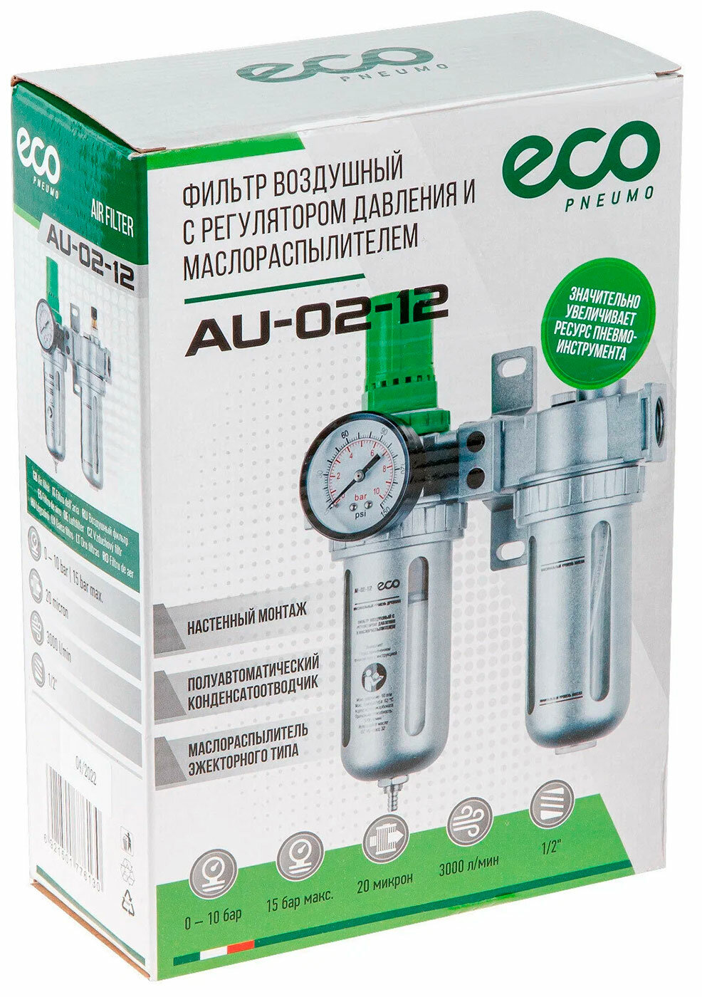 Блок подготовки воздуха с регулятором давления и маслораспылителем 1/2" ECO AU-02-12 .
