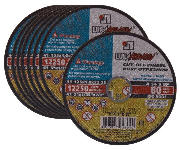 Круг отрезной LUGAABRASIV 125 x 1.0 x 22, 20 шт. Луга Абразив для болгарки