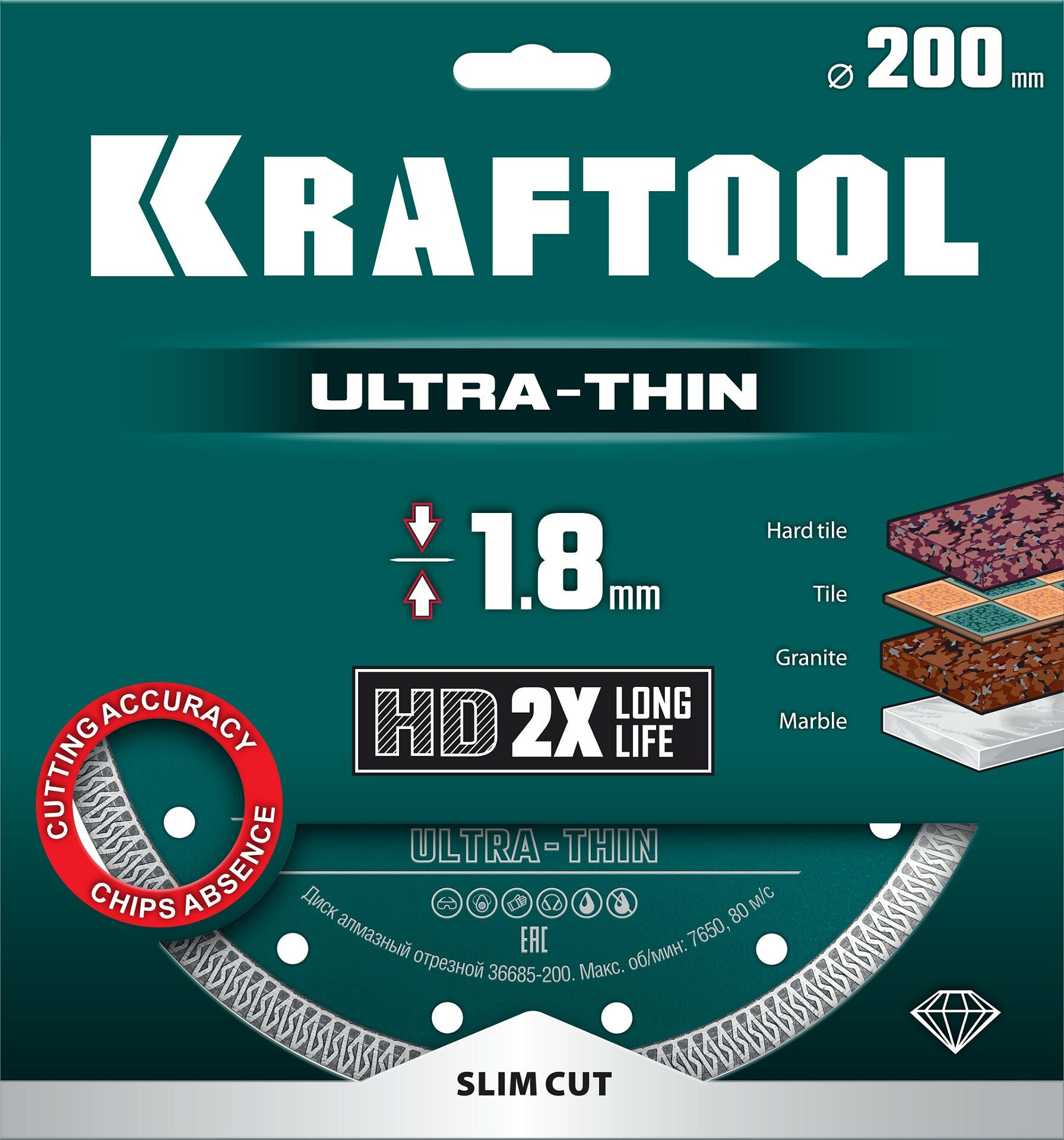 KRAFTOOL ULTRA-THIN 200х1.8 мм ультратонкий алмазный диск (36685-200) (36685-200)
