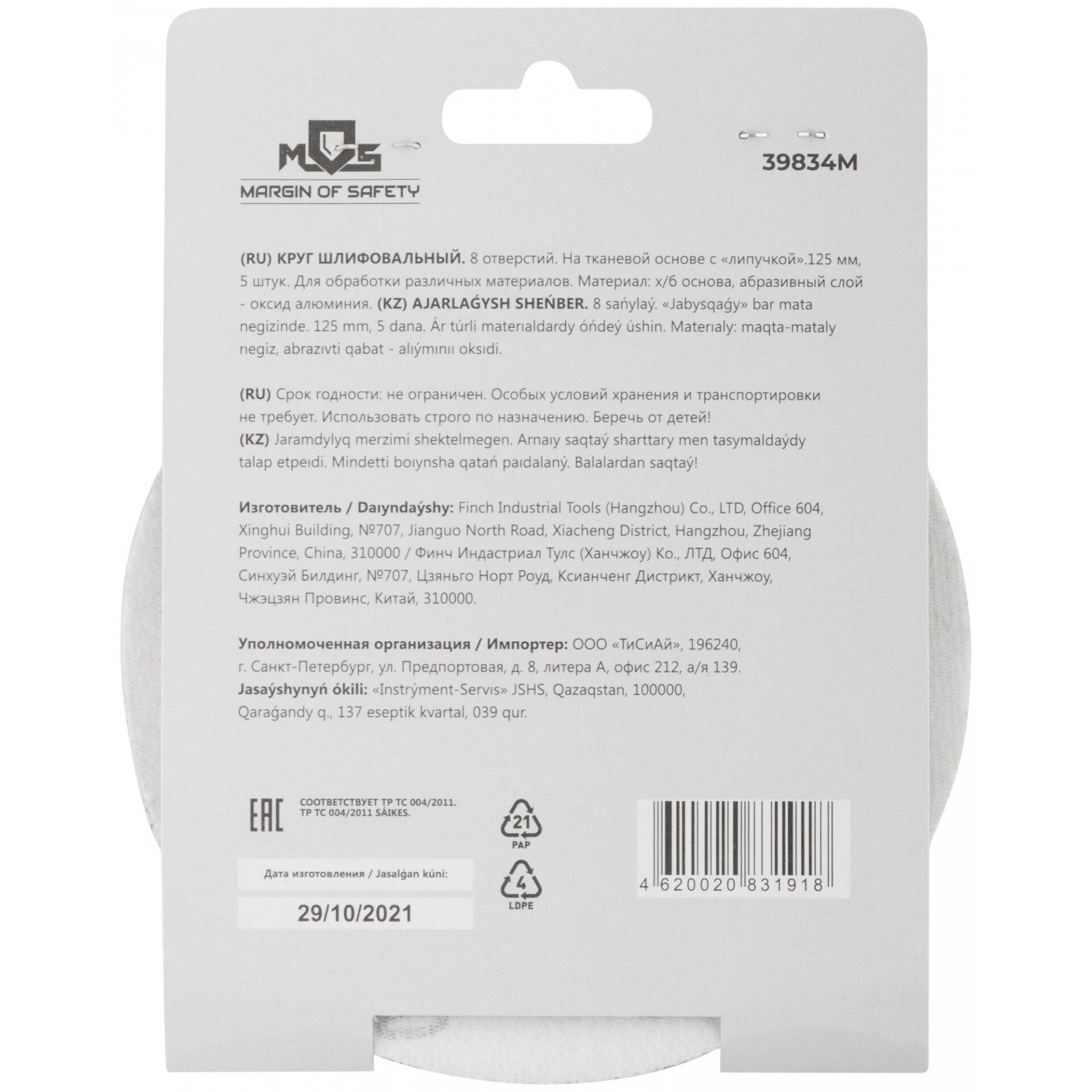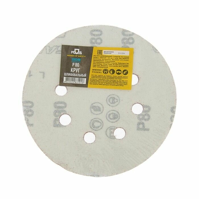 Круги шлифовальные с отверстиями (липучка), алюминий-оксидные, 125 мм, 5 шт. Р 80, MOS 39834М (1 шт.) интересное: