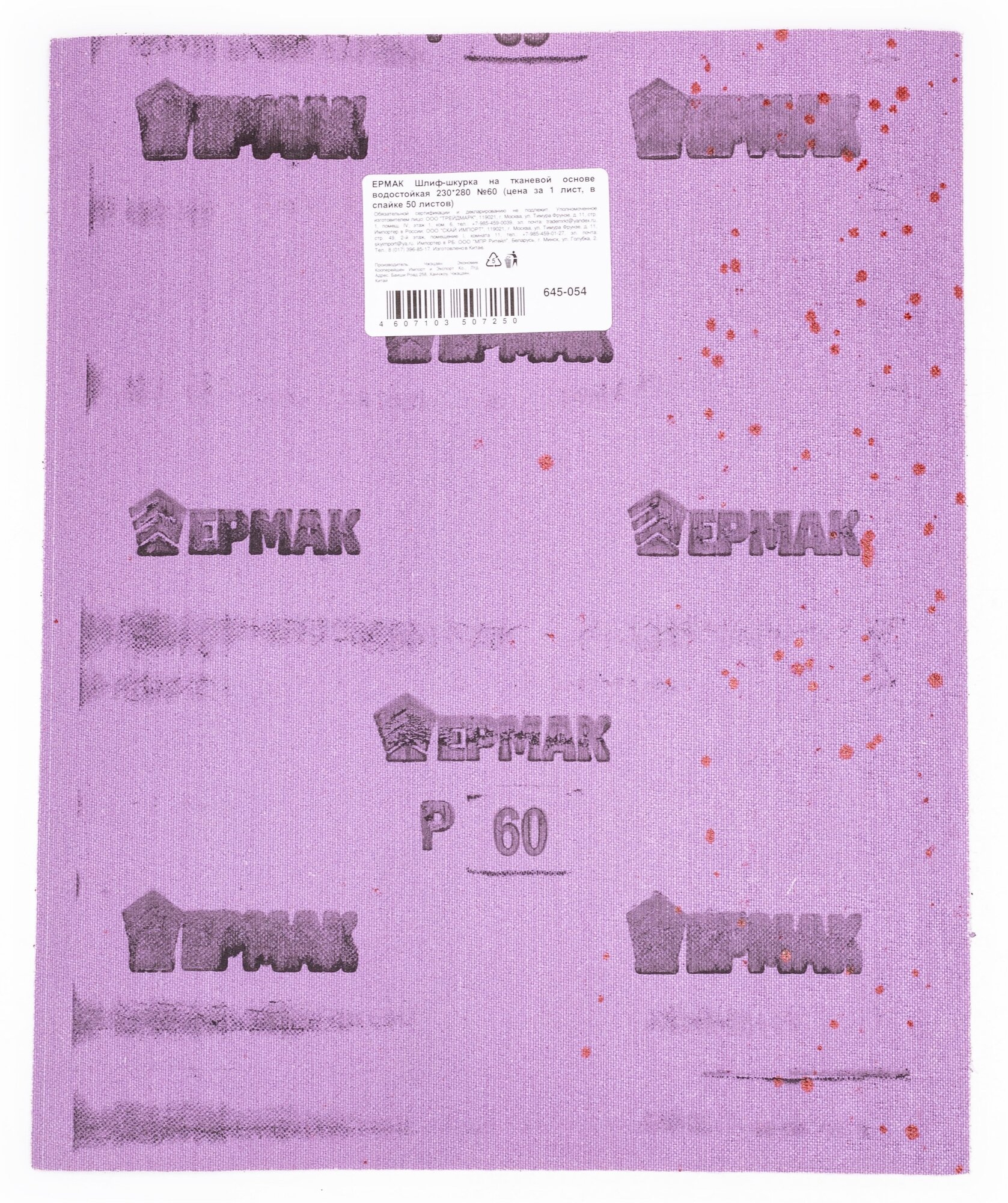 Шлиф-шкурка на тканевой основе водостойкая 230*280 №60 (цена за 1 лист, в спайке 50 листов) ермак