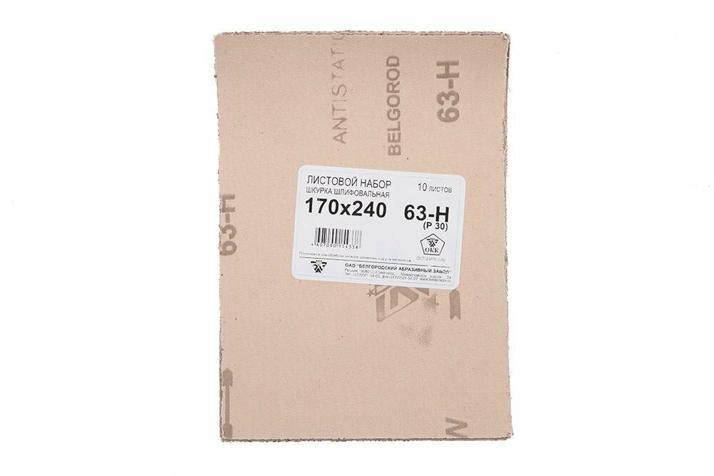 Бумага наждачная №63, P30, 240 x 170 мм, 10 шт